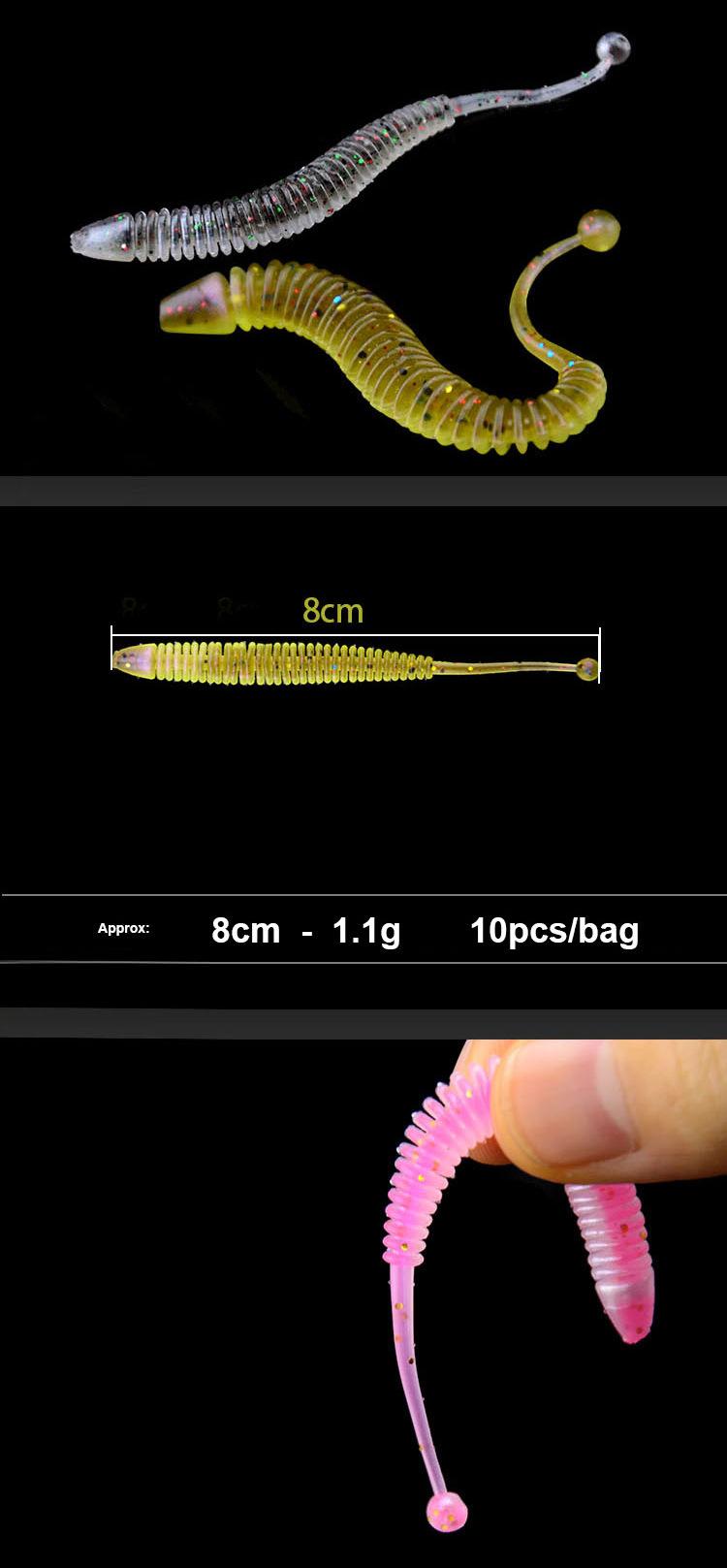 1.1g 8cm Señuelo Blando Señuelo Cola de Bola Gusano Blando Punta Verde Luofei Mero Pesca de Fondo Señuelo Falso Señuelo Artificial Cebo