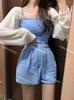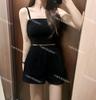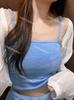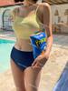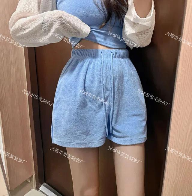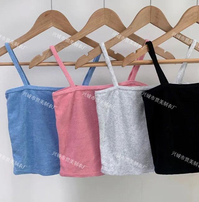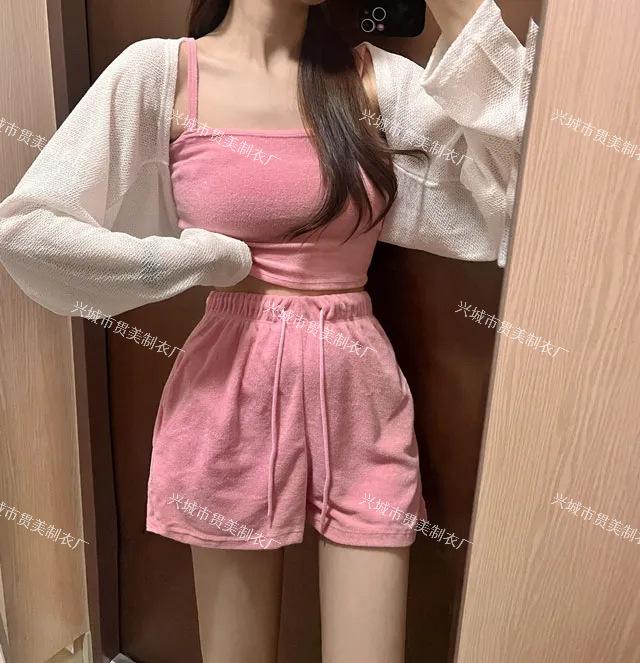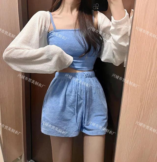 Traje de baño femenino de tres piezas con parte superior de tubo de tela de toalla de color sólido estilo coreano