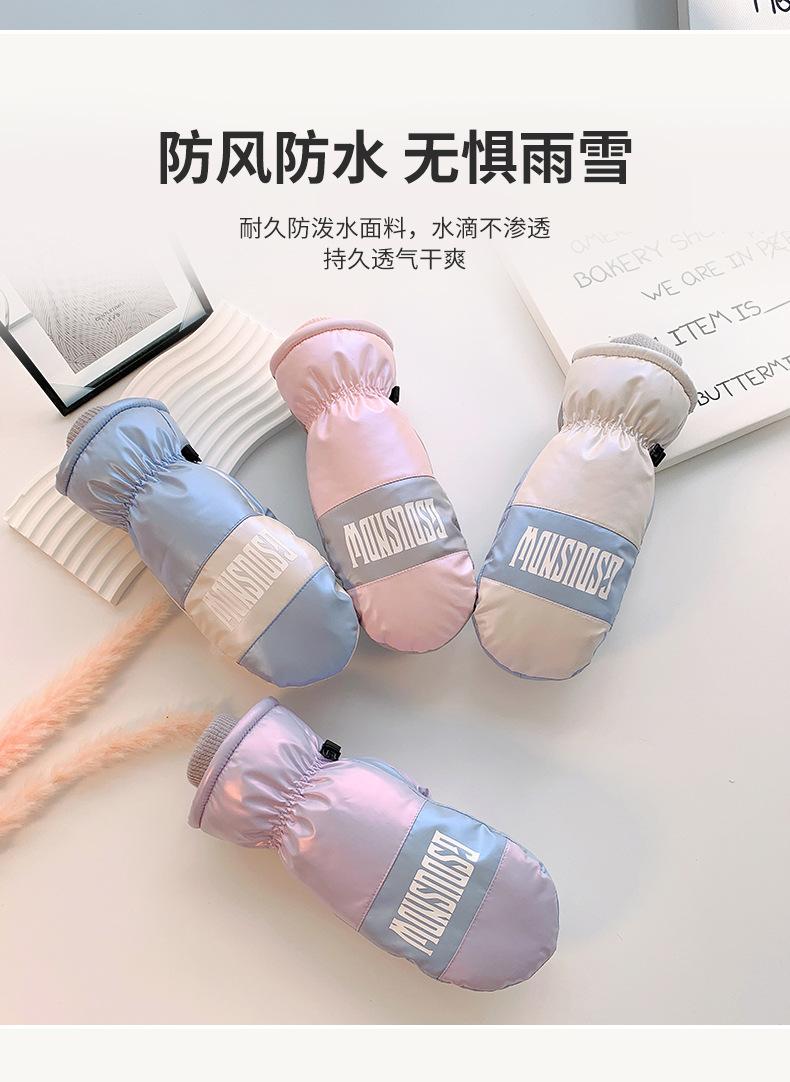 Guantes de esquí de invierno para mujer, de estilo transfronterizo, para deportes al aire libre, de colores claros, a la moda, impermeables y cálidos.