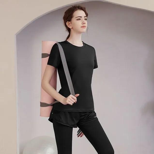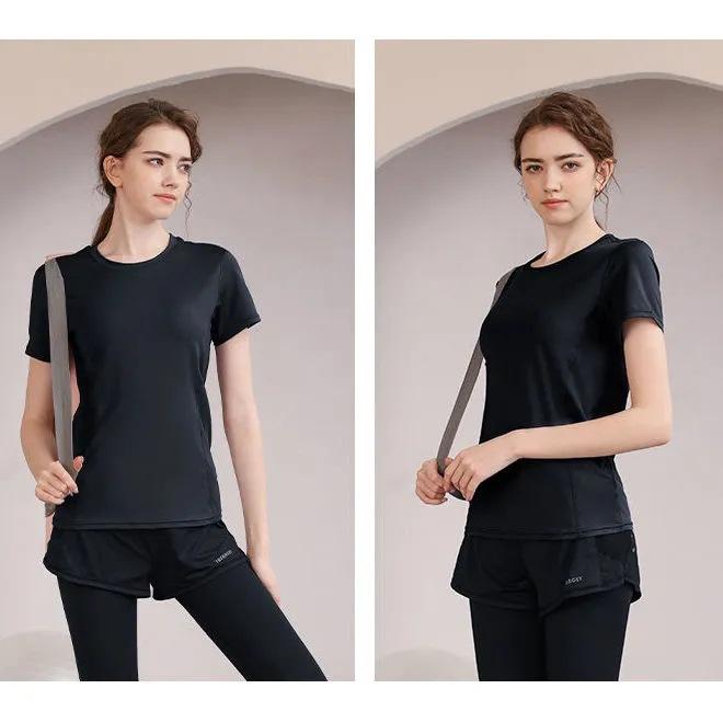 Ropa de yoga transpirable de manga corta para deportes al aire libre, correr, cuello redondo, secado rápido, entrenamiento profesional, ropa de fitness popular en internet.