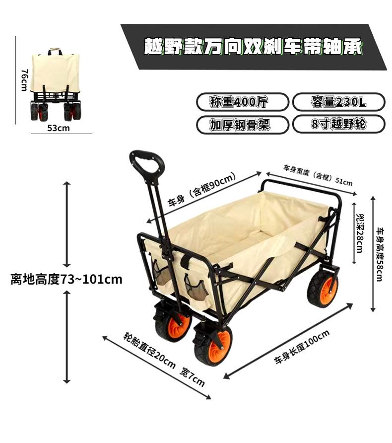 Carrito de camping Carrito portátil para exteriores Carrito de camping de gran tamaño Carrito de picnic plegable Remolque para carrito de camping