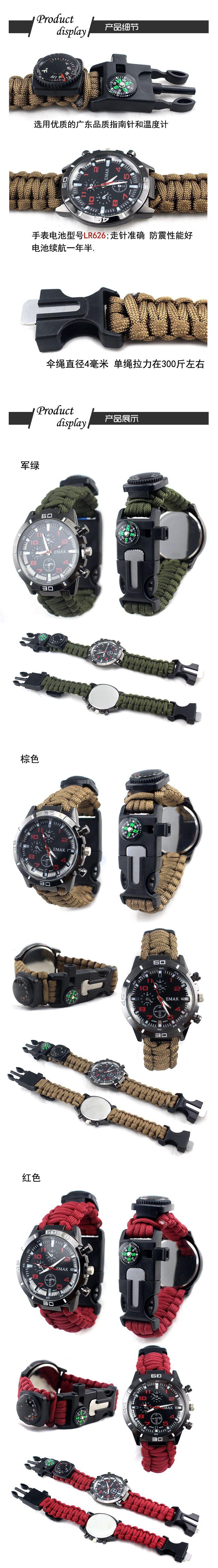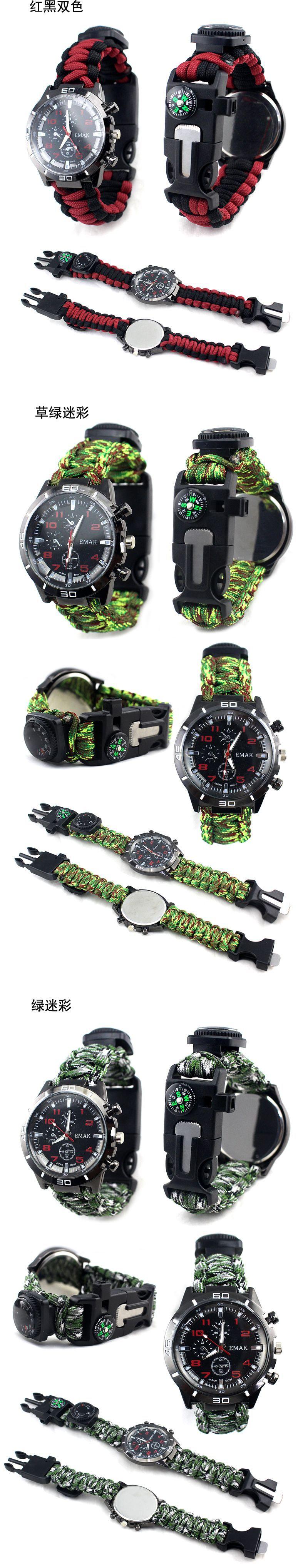 Brújula termómetro suministros para montañismo y camping al aire libre pedernal cuerda de paracaídas tejido reloj de montañismo con letras rojas al por mayor