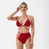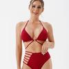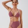 Traje de baño de dos piezas con tirantes irregulares y abertura en la parte delantera, bikini sexy de color liso, Amazon 2024