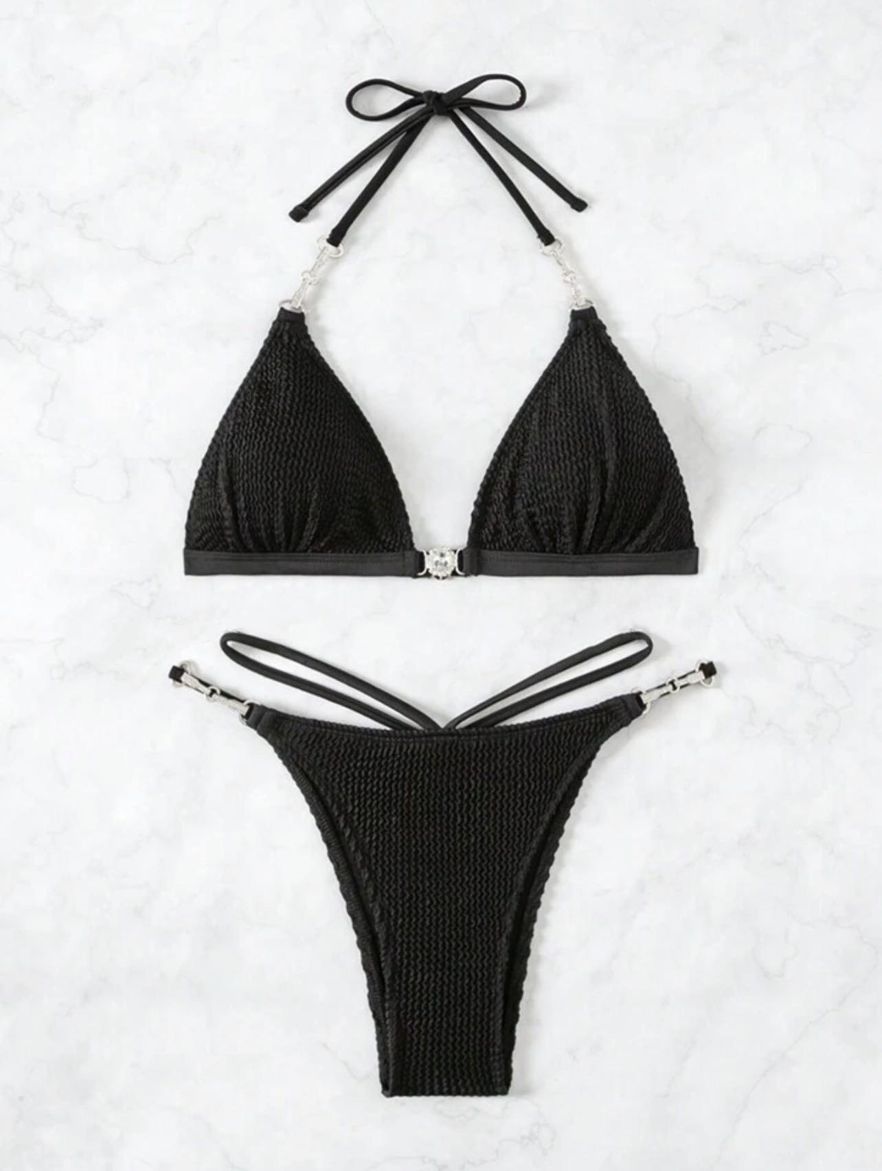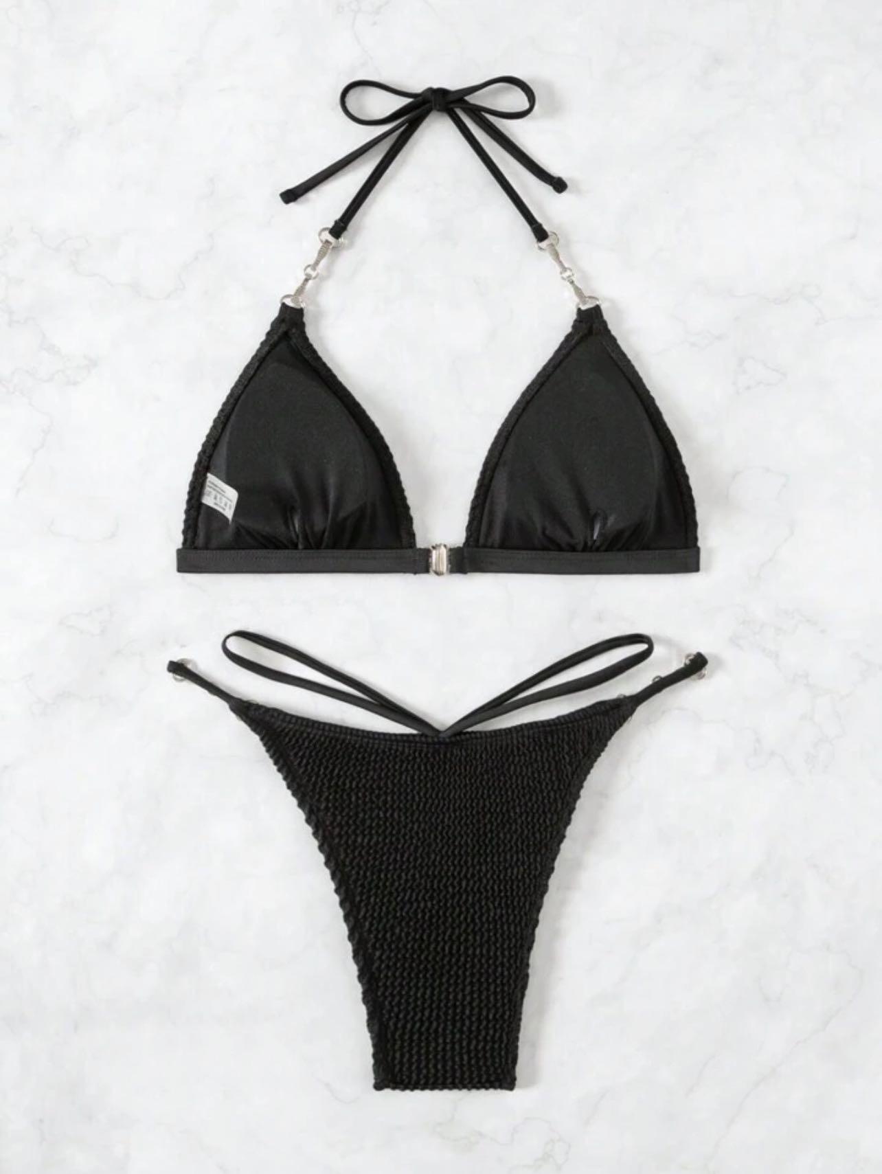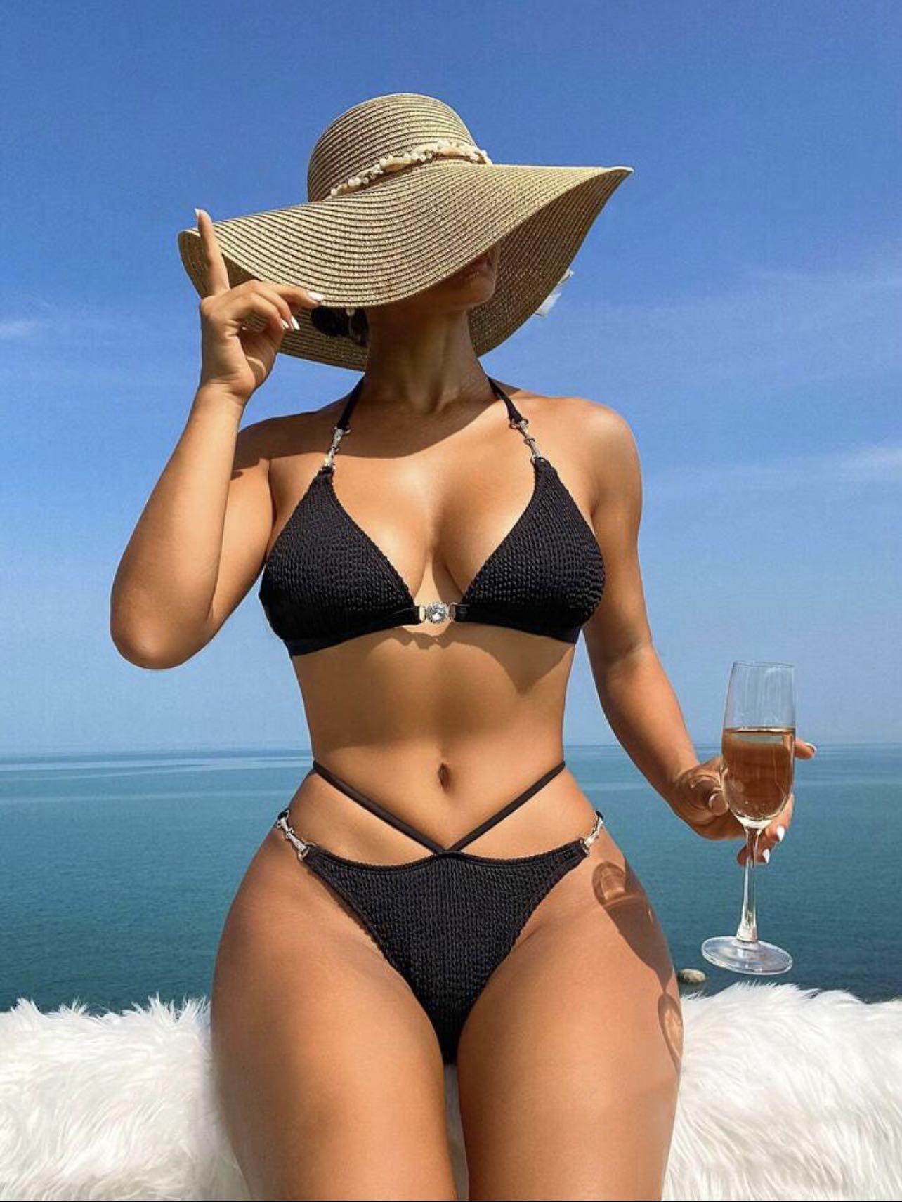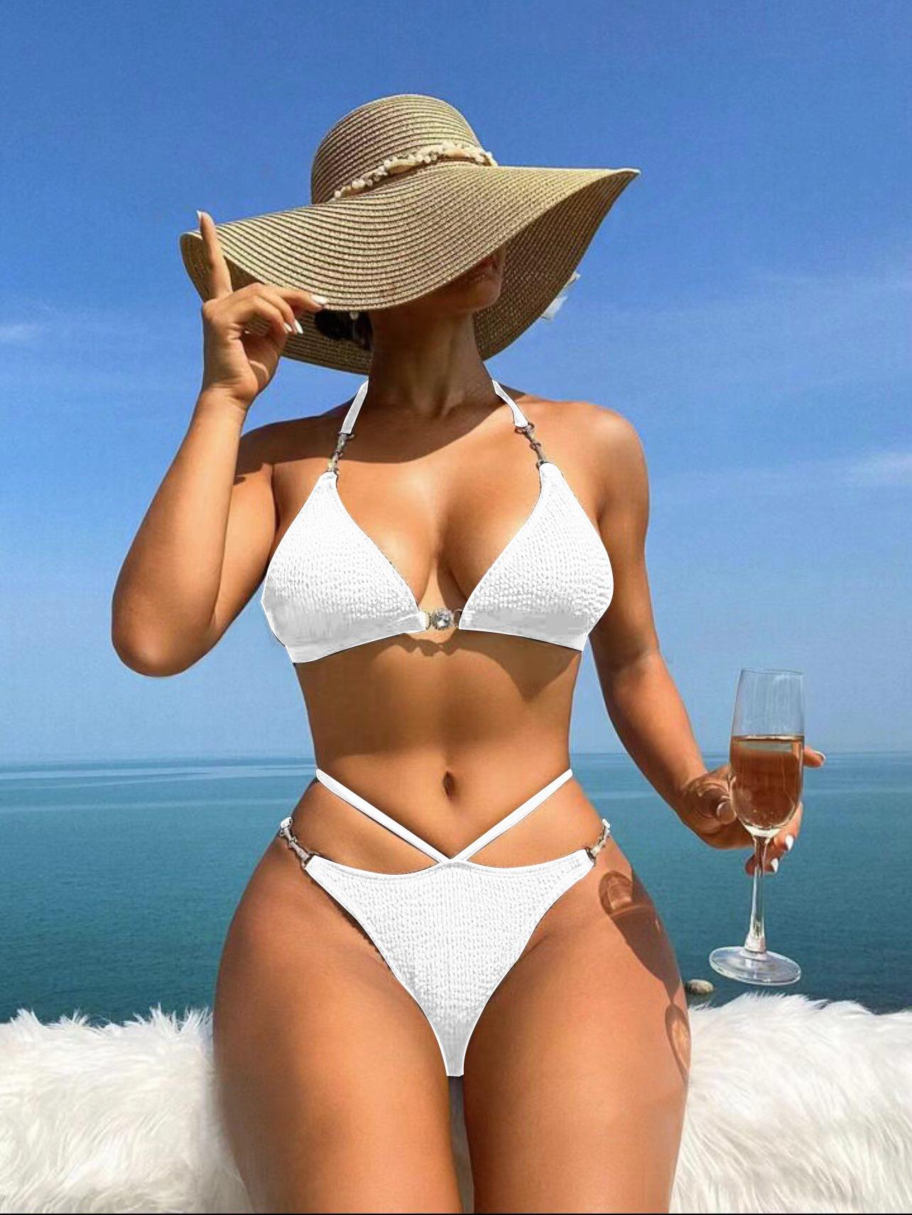 Europa y Estados Unidos nuevo traje de baño transfronterizo sexy de color sólido con cuello bikini playa traje de baño de mujer vacaciones