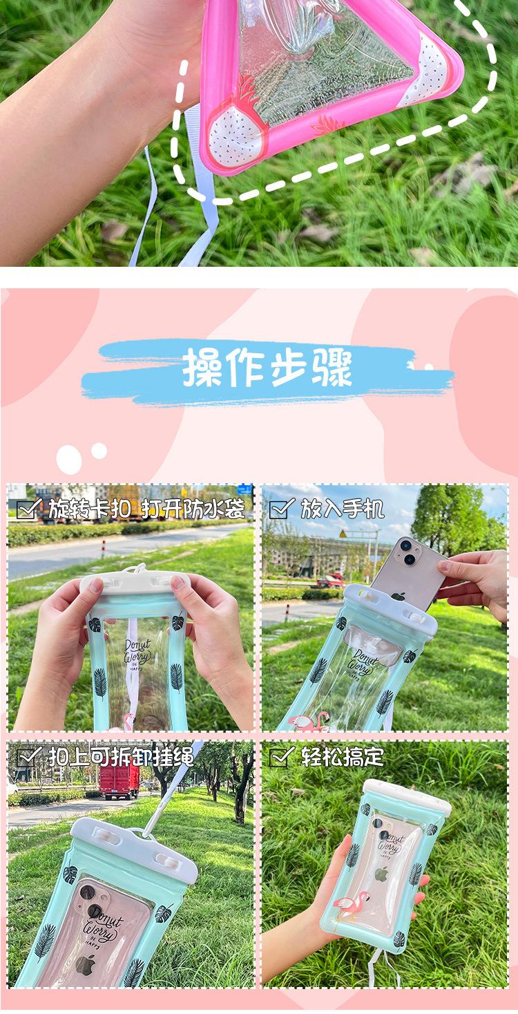 Introducción de características: después de guardarlo, no solo puede ser resistente al agua, sino que, lo que es más importante, también puede usar todas las funciones del teléfono móvil normalmente.Como tocar, tomar selfies, enviar mensajes de texto, responder llamadas, jugar juegos, etc... Ven y juega con él.