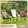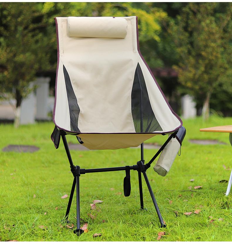 Silla plegable ultraligera de aleación de aluminio para exteriores, portátil, silla espacial elevada, silla con respaldo, pesca, ocio, transpirable, silla lunar
