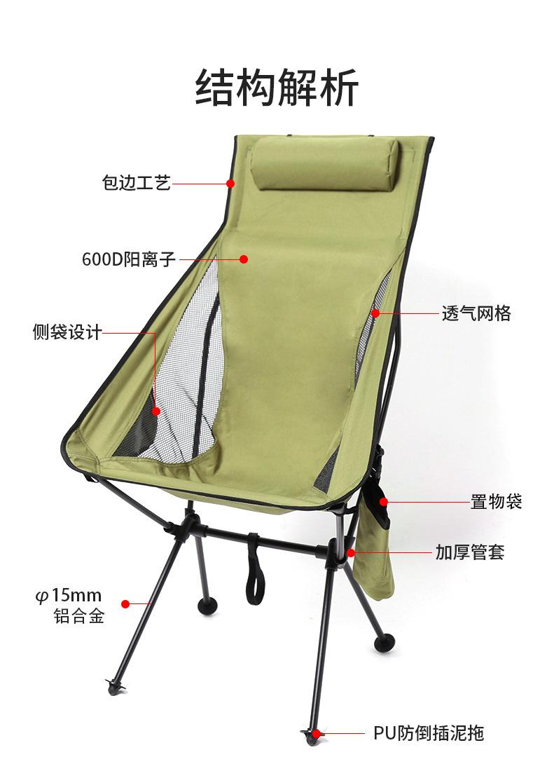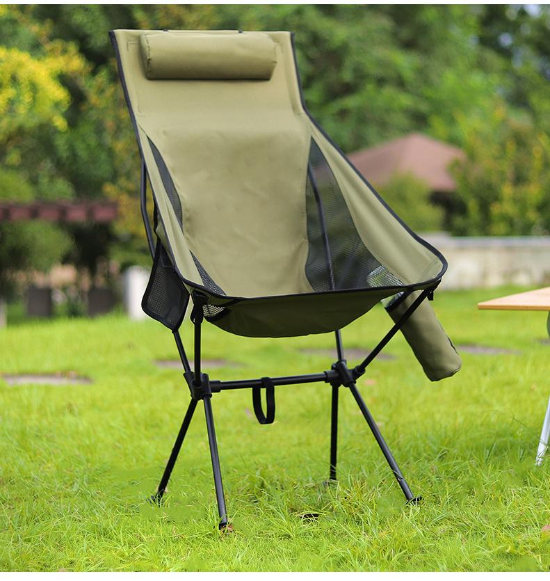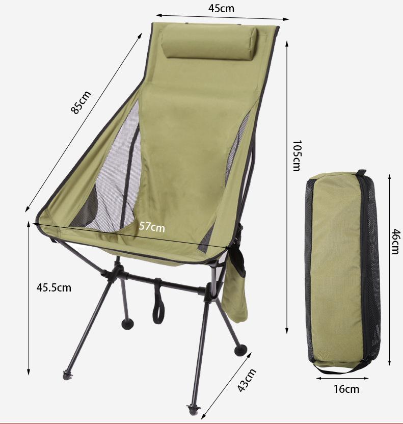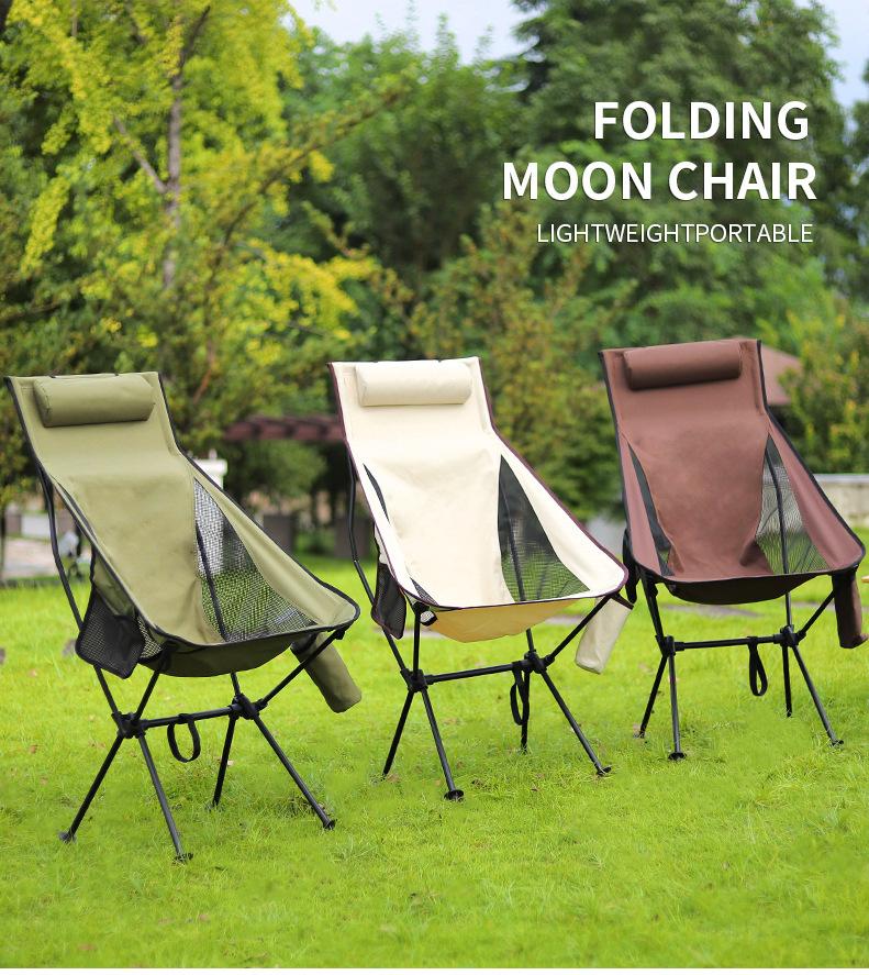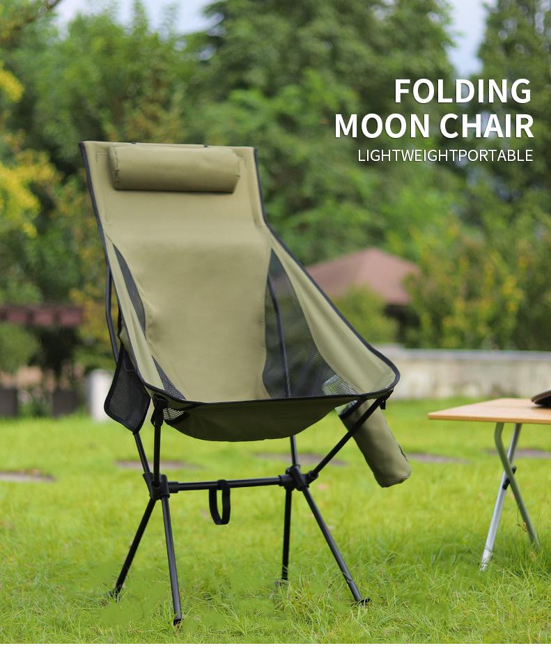 Silla plegable ultraligera de aleación de aluminio para exteriores, portátil, con respaldo elevado, para pesca, ocio, transpirable, tipo luna.