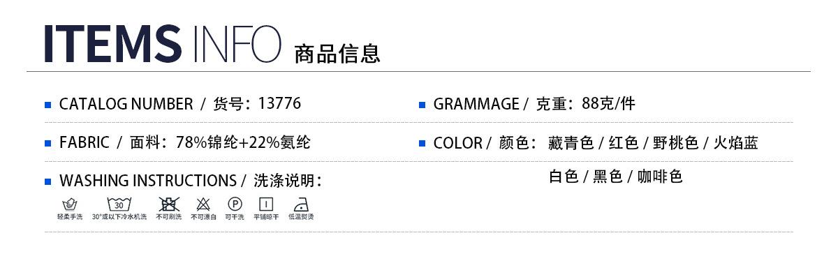White, Black, Red, Coffee, Navy, Wild Peach, Flame Blue