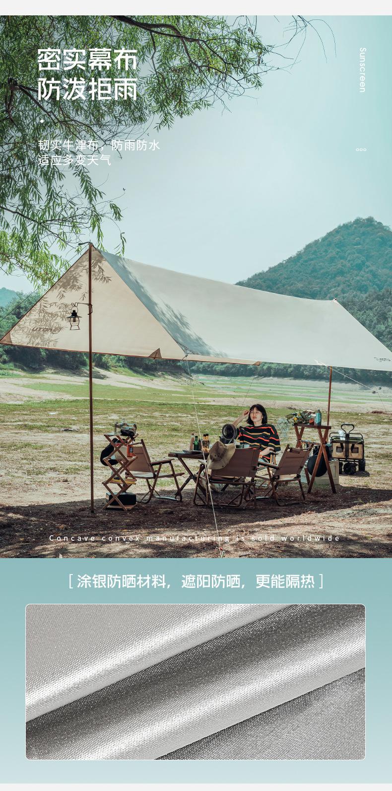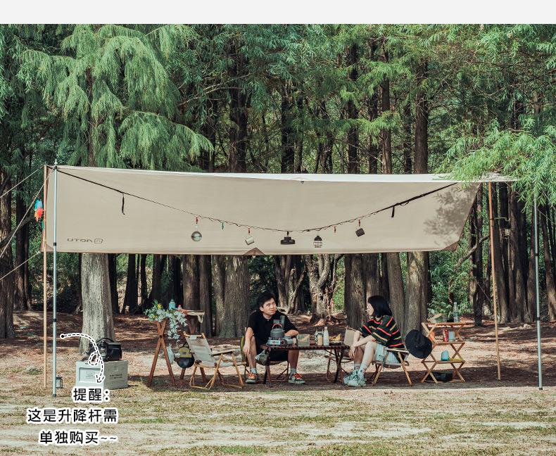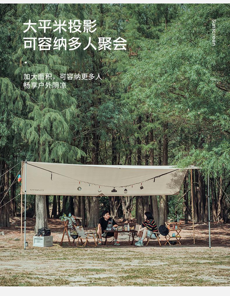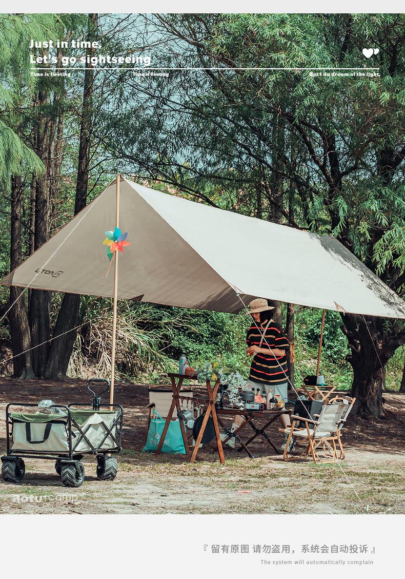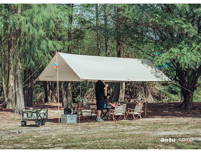 Lista: tela*1, varilla de soporte*1 par, cuerda de viento*8, estaca de tierra*8, martillo*1, bolsa de almacenamiento*1
