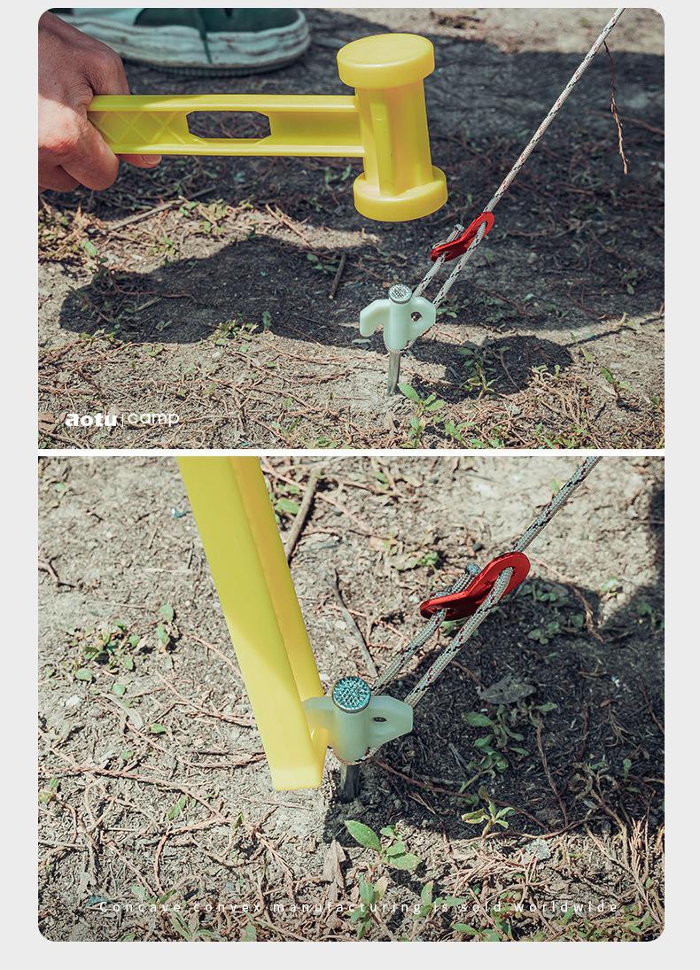 Lista: superficie de tela * 1, varilla de soporte * 1 par, cuerda de viento * 8, estaca de tierra * 8, martillo * 1, bolsa de almacenamiento * 1