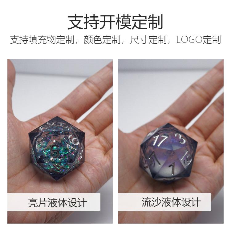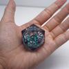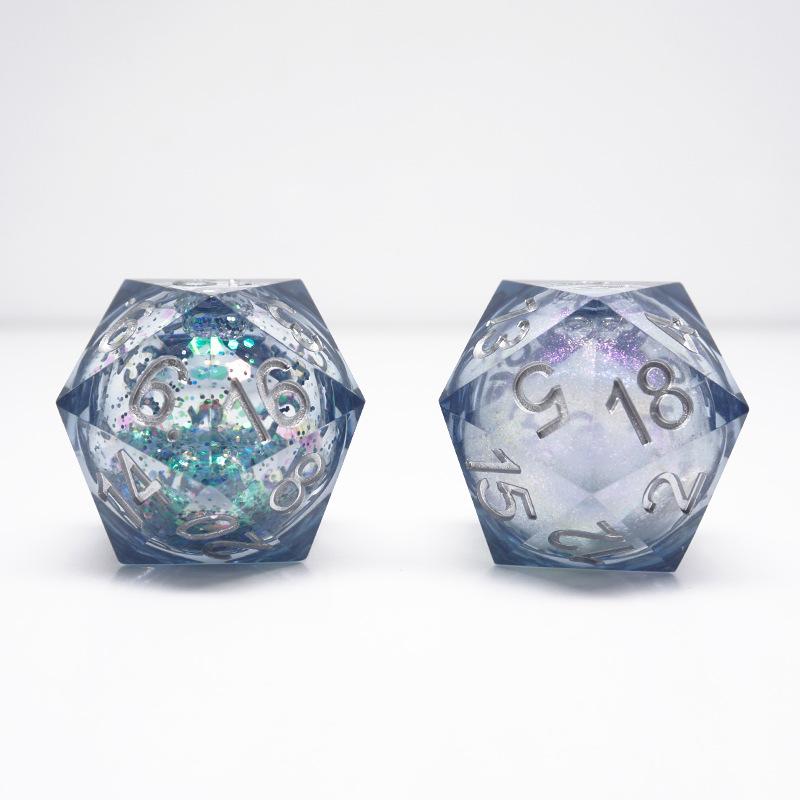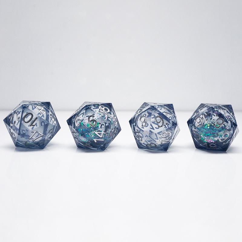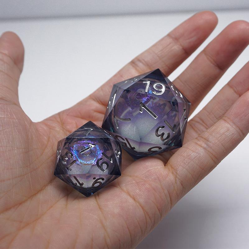 El dado tiene bordes y esquinas afilados, los números de 20 caras están claramente grabados y el aceite está aplicado uniformemente.