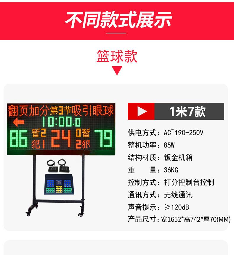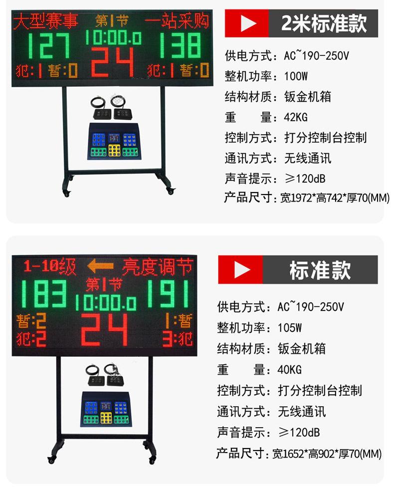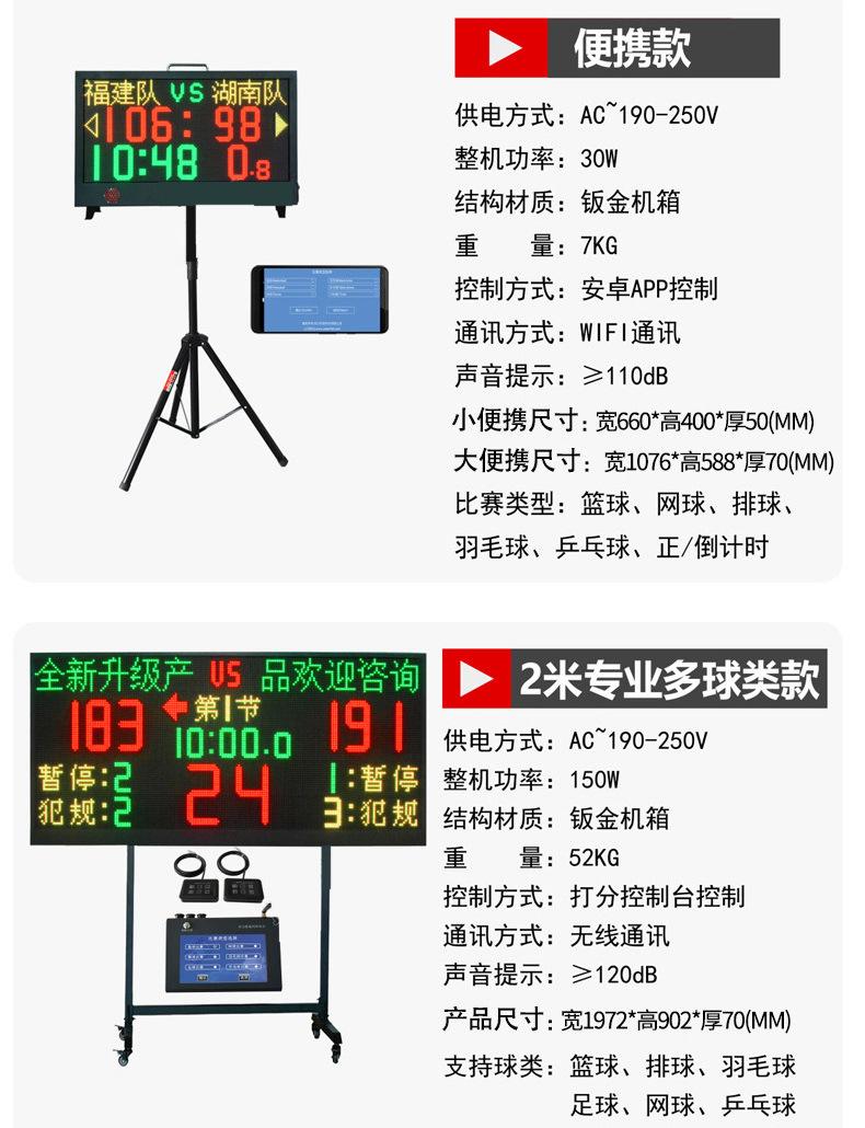 0.66 m wide * 0.4 m high * portable electronic scoreboard (Android app mobile phone control), 1.1 m wide * 0.6...