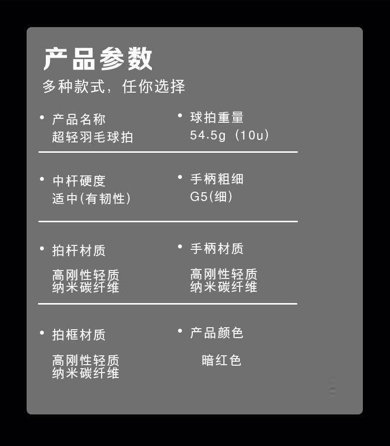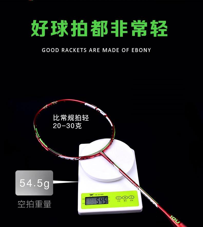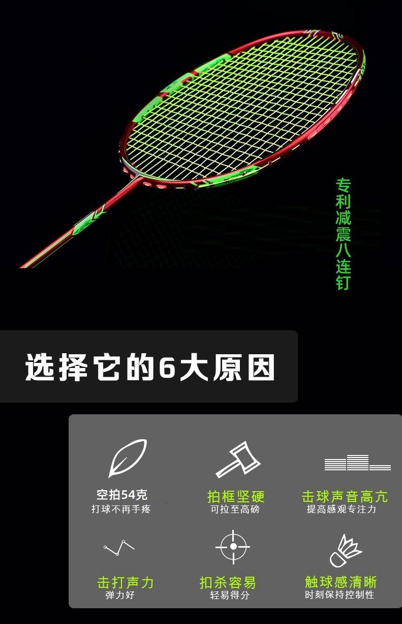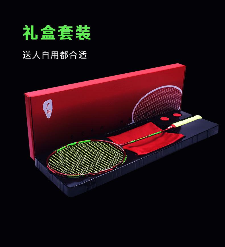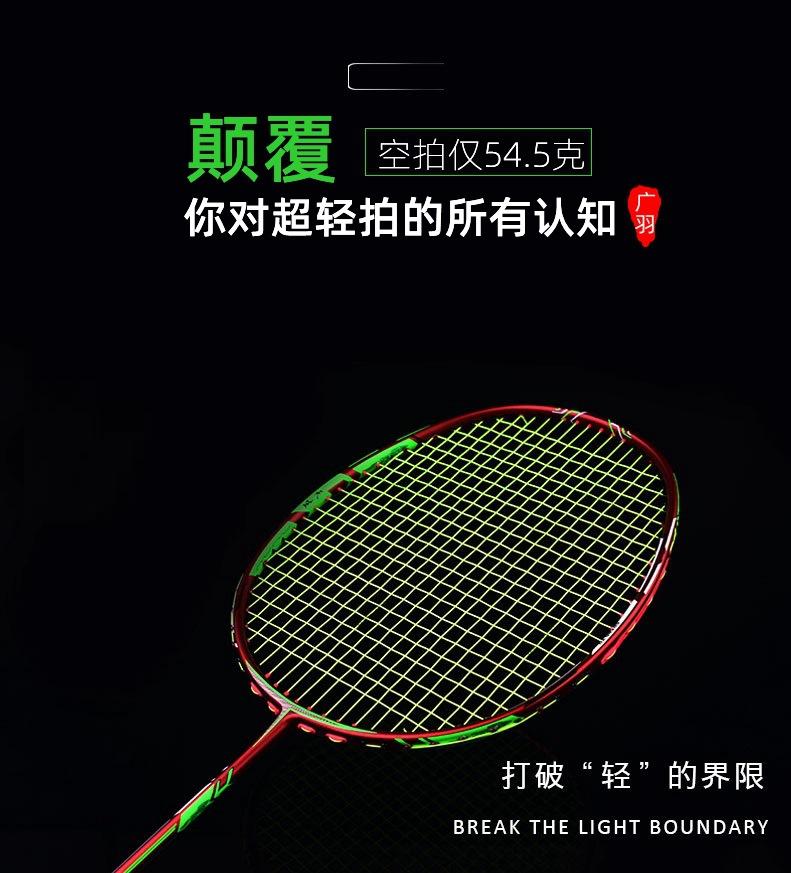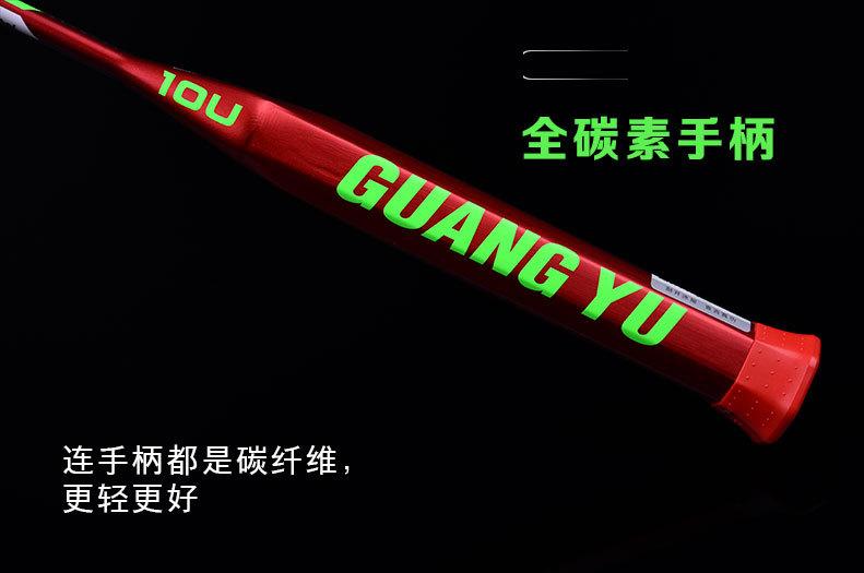 Guangyu【Serie Ultraligera 10U】Un líder nato.La raqueta en general adopta el rojo chino como color principal, y el material de la raqueta está hecho de un proceso de moldeo secundario de refuerzo de fibra de carbono completa, con un encordado de hasta 30 libras.La raqueta está hecha de materiales genuinos, lo cual se puede ver claramente a simple vista. La raqueta está diseñada con un peso de 10U, y el peso de la raqueta vacía es de solo 52-54 gramos. La primera sensación al sostener la raqueta en la mano es "ligera", y no se siente en absoluto que se está sosteniendo una raqueta de bádminton.[Recomendación: Tipo ofensivo y defensivo, puede golpear en cualquier lugar, fácil de usar y buena sensación]