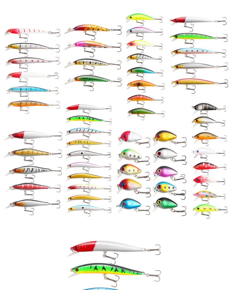 Juego de 56 cebos Luya, combinación mixta, cebo Mino, cebo falso de simulación, cebo duro, productos de equipo de pesca de lubina mejorados