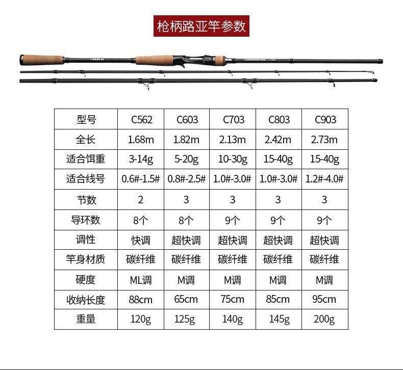 Caña Luya de Tres Secciones Lin Lake M/ML Carbono Ajustable Mango Recto Mango de Pistola Caña de Pescar Retráctil Luya Caña de Larga Distancia
