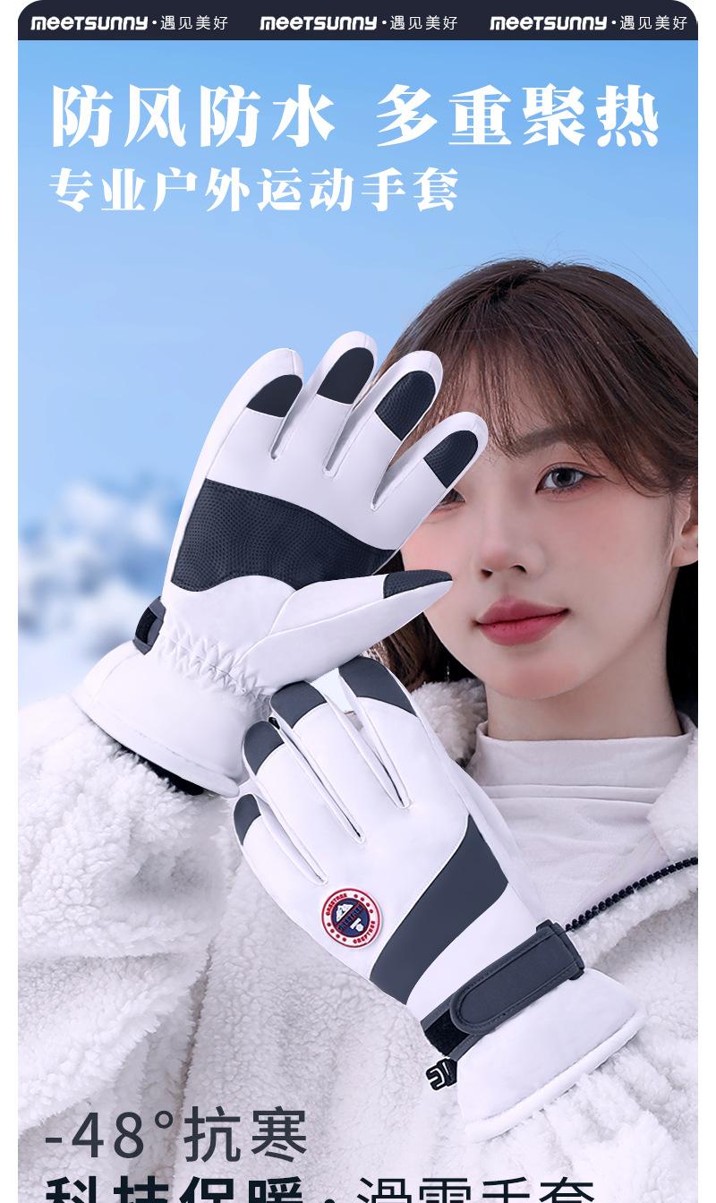 MEETSUNNY en stock Guantes de Esquí Neutros Viento Color Contraste Impermeables Ciclismo al Aire Libre Invierno Guantes Gruesos de Tres Capas