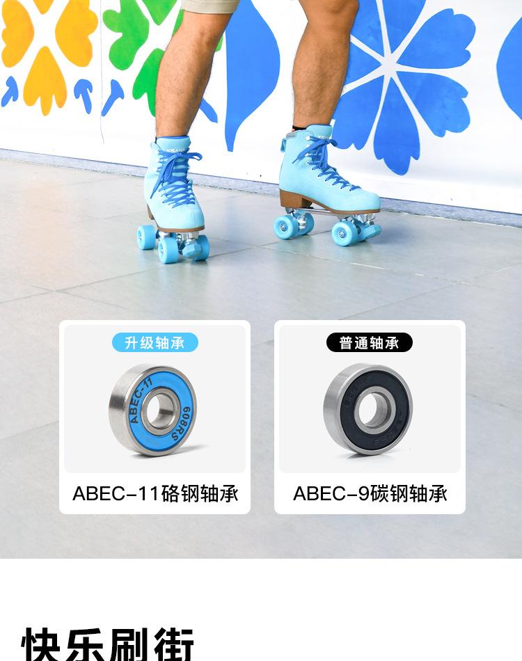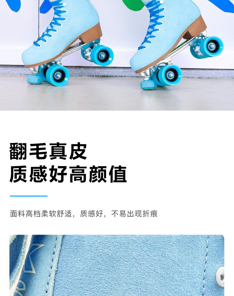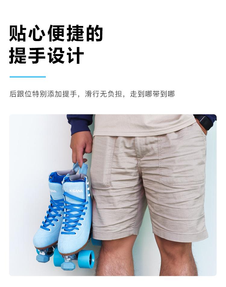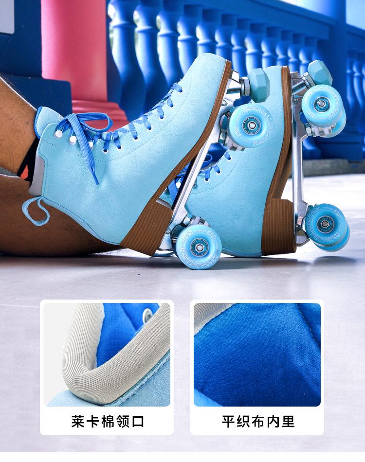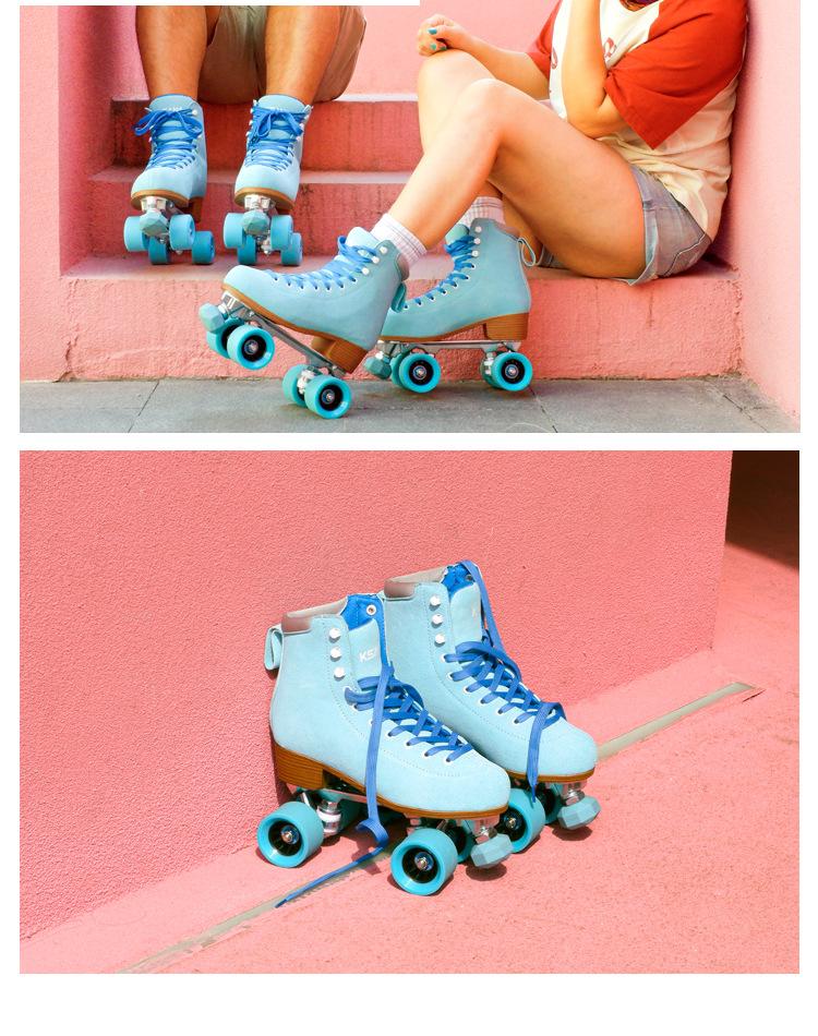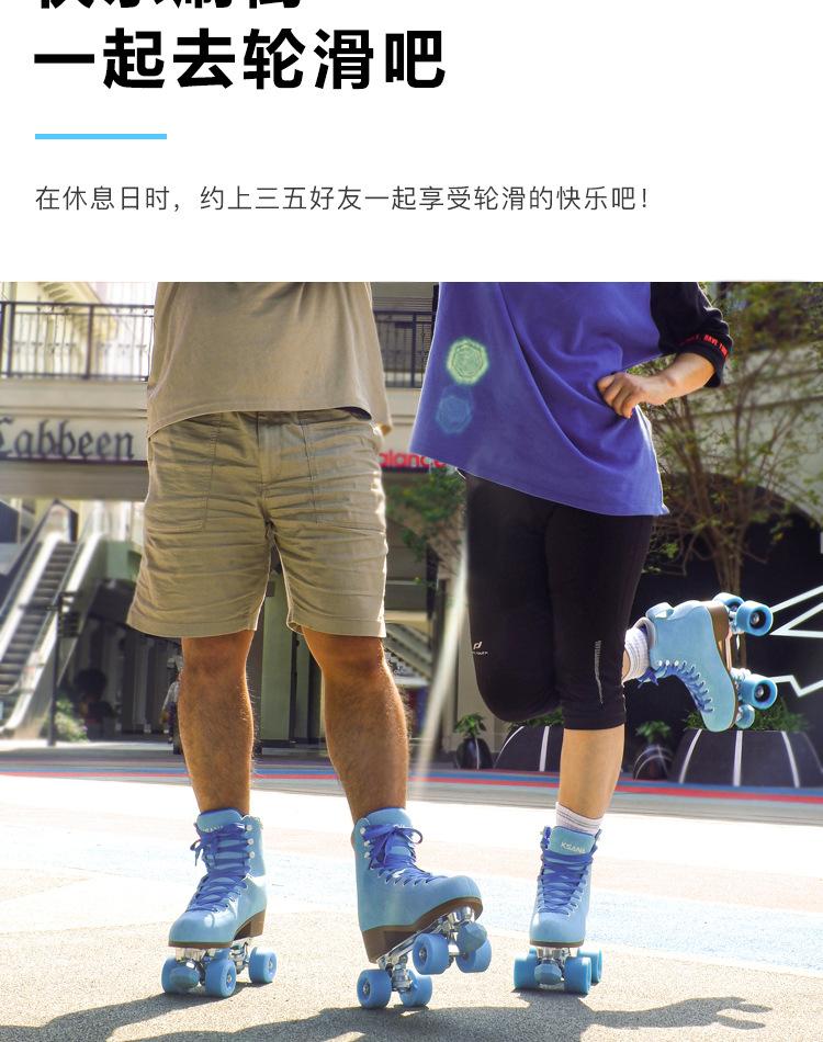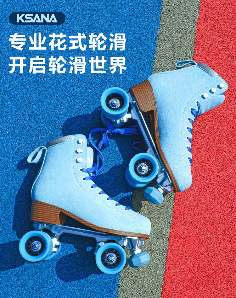 Patines de ruedas de doble fila para hombre y mujer KSANA, patines de cuatro ruedas de cuero gamuza azules, patines de ruedas con polea de velocidad
