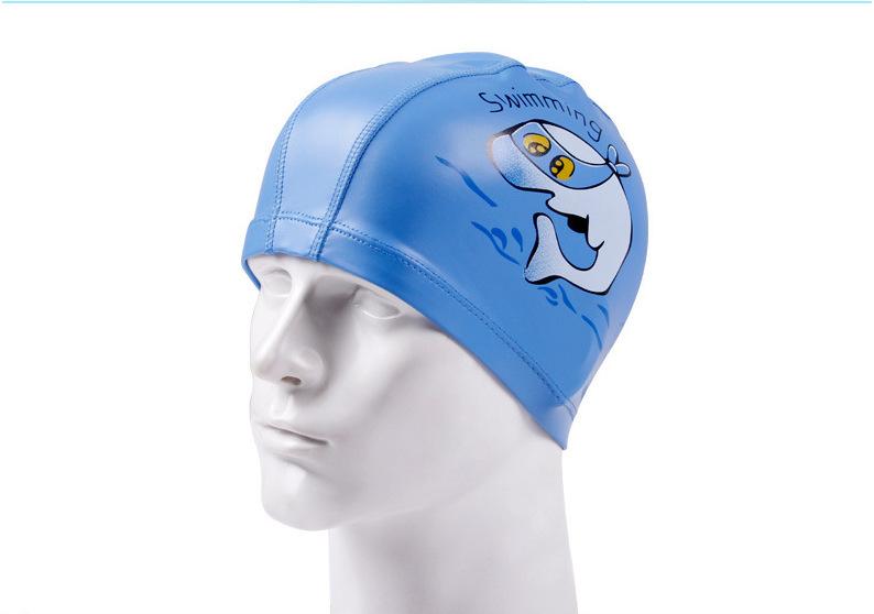 Gorro de baño para niños, nuevo, impermeable, para el cuidado del cabello, cómodo, sin cabeza, con revestimiento de PU, gorro de baño con dibujos animados, equipo de natación