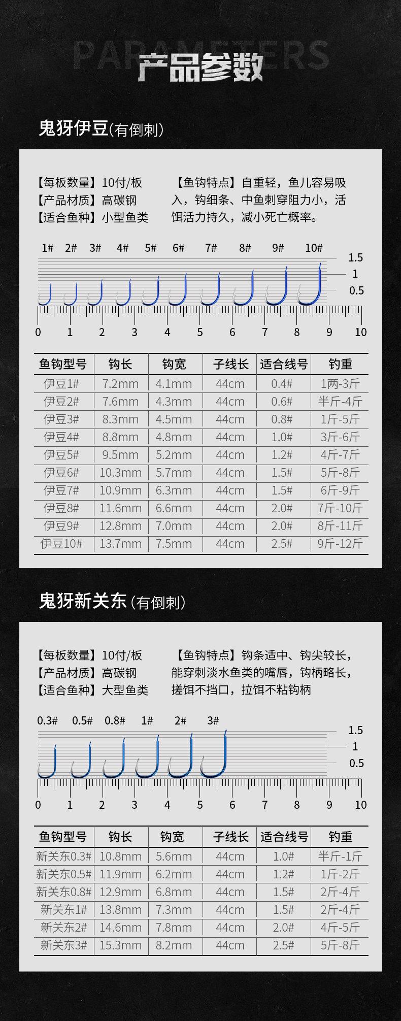 10 pairs of ghost teeth double hook-Idou (with barbed), 10 pairs of ghost teeth double hook-new Kanto (no barb...