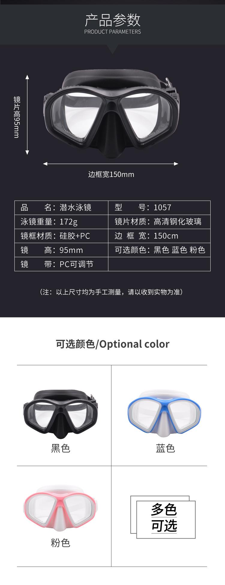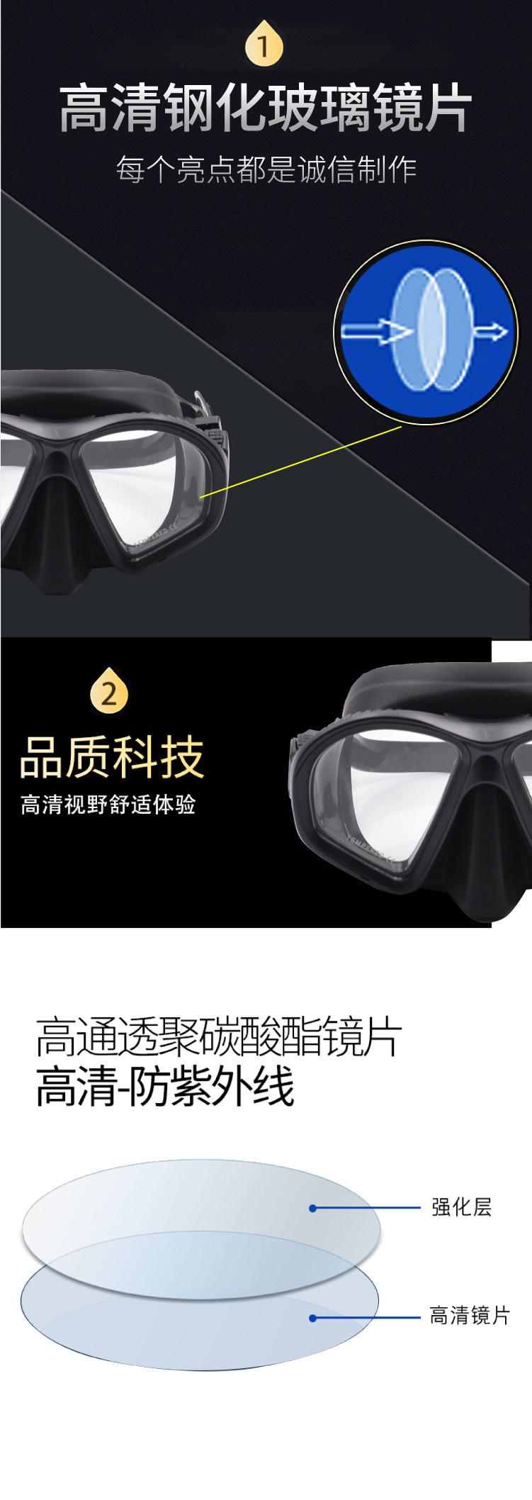 Máscara de respiración de vidrio templado antivaho de lente única de campo de visión grande para adultos, gafas de buceo profundo, gafas de snorkel, gafas de buceo libre