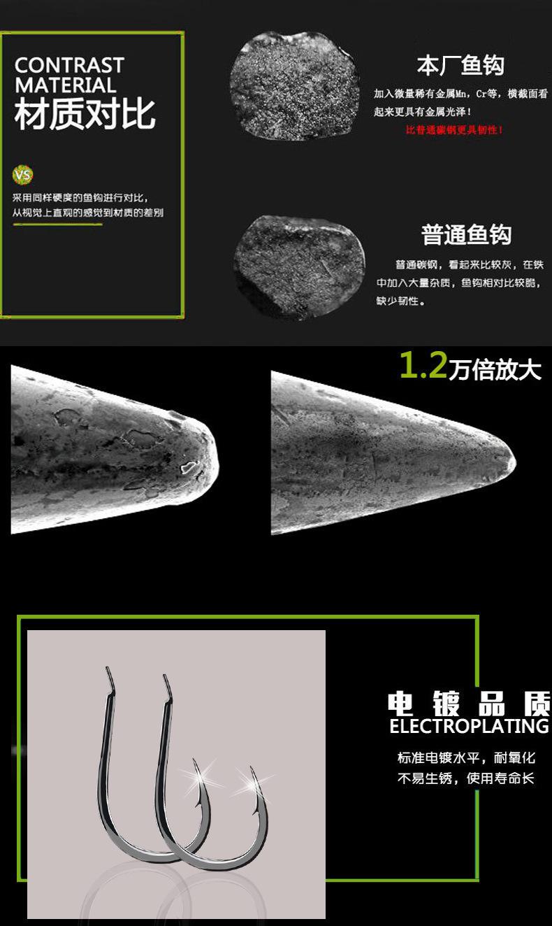 Los anzuelos vienen en diferentes tamaños, formas y grosores. El grosor del anzuelo está relacionado con su tamaño. Normalmente, el tamaño del anzuelo es proporcional a su grosor; es decir, cuanto mayor sea el tamaño, más grueso será y mayor será su resistencia a la tracción. Por el contrario, cuanto menor sea el tamaño del anzuelo, más delgado será y menor será su resistencia a la tracción. Sin embargo, no todos los anzuelos pequeños son delgados y tienen poca resistencia. Sabemos que la fuerza de tracción depende principalmente del material del anzuelo. Cuanto mejor sea la calidad del alambre de acero, mayor será la resistencia a la tracción. Además, un ángulo razonable y científico del anzuelo también puede mejorar su resistencia a la tracción. Tomemos como ejemplo el anzuelo Ise-ni. El grosor de la punta del anzuelo es diferente, lo que hace que el anzuelo grueso y el delgado tengan funciones diferentes. Los anzuelos gruesos se utilizan principalmente para capturar peces más grandes. Por ejemplo, los peces carnívoros feroces como la carpa negra, la carpa herbívora, la carpa común, la carpa plateada y la carpa cabezona en agua dulce, o el besugo negro y el besugo rojo en agua salada, tienden a ser agresivos y poderosos. Si se pescan con anzuelos delgados, es fácil que se enderecen, se rompan y el pez escape. El carpín y el pargo son cautelosos al alimentarse, son pequeños, se resisten poco y tienen bocas pequeñas. El uso de anzuelos delgados puede ser eficaz. Las ventajas de los anzuelos delgados son su buena ocultación, su gran capacidad de perforación y su pequeño tamaño. Pueden usarse para capturar peces astutos en estanques con resultados ideales. Las ventajas de los anzuelos gruesos son su alta resistencia a la tracción y su dificultad para soltarlos después de capturar el pez. La desventaja es su baja capacidad de perforación, lo que puede provocar que los peces se vuelvan cautelosos y afectar la tasa de picadura. No son adecuados para pescar peces más pequeños.