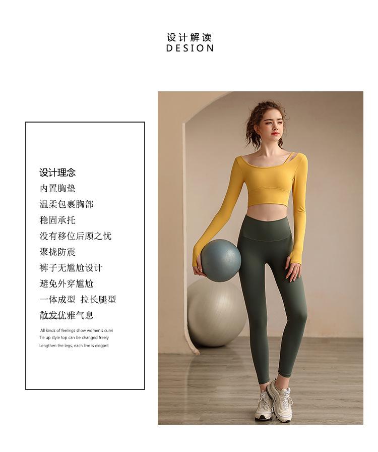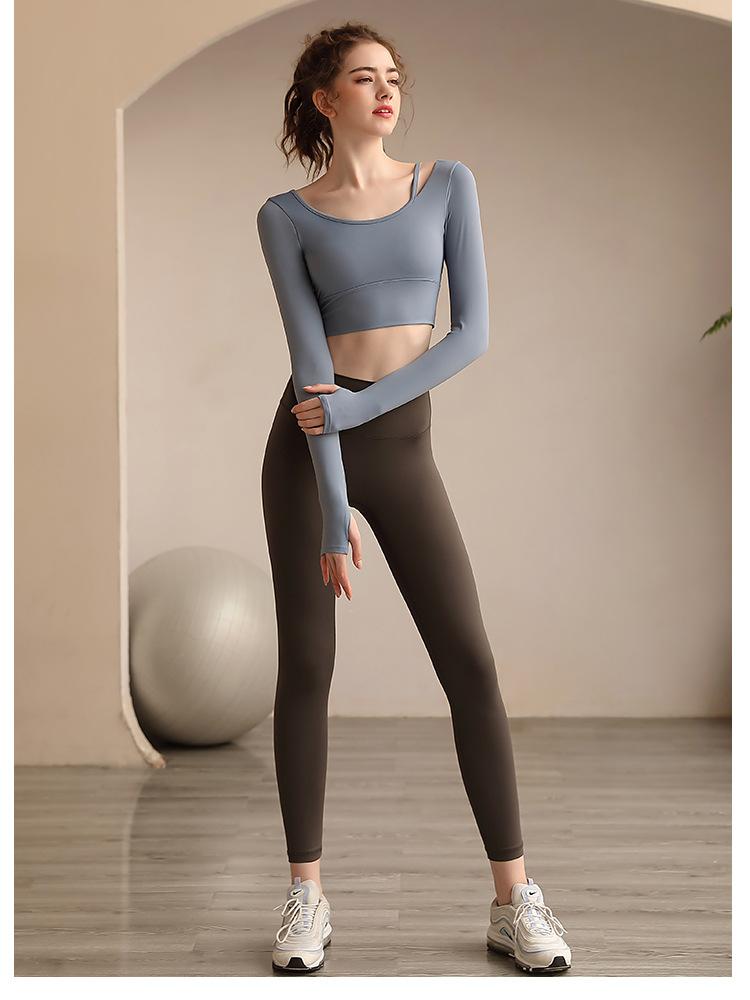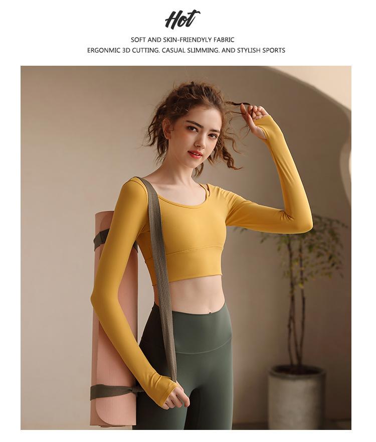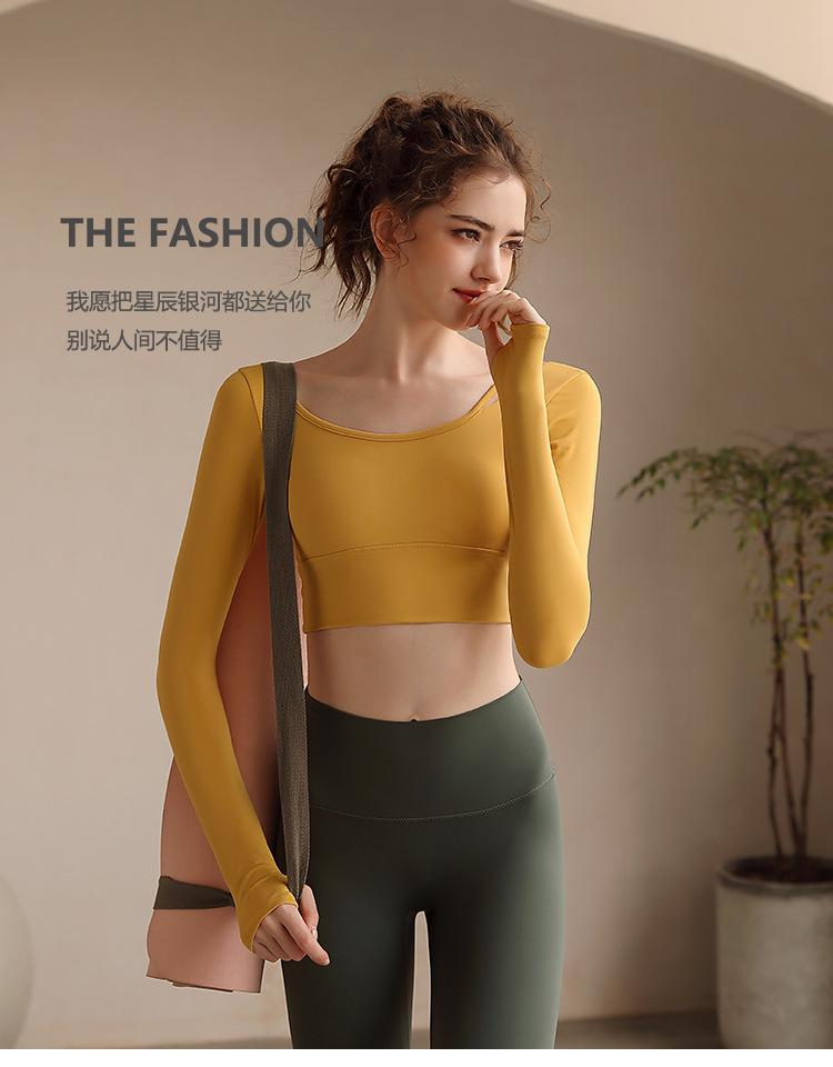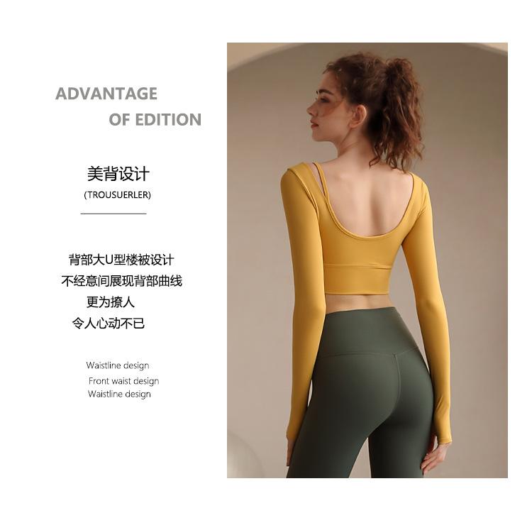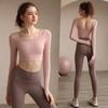 Nuevo Traje de Ropa de Yoga para Mujer con Almohadillas en el Pecho, Tops Deportivos de Manga Larga, Conjunto de Ropa Ajustada para Correr y Fitness de Otoño e Invierno
