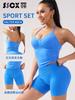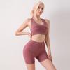 Pantalones cortos deportivos de yoga para mujer, ajustados, sin costuras, con degradado en color melocotón, para correr.