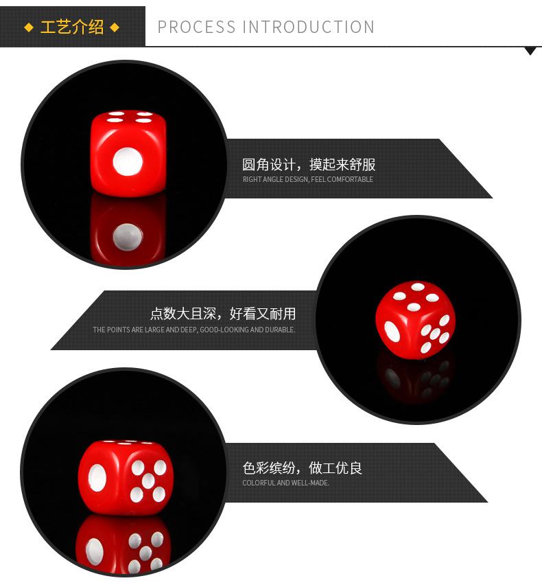Nuestra fábrica se especializa en la fabricación de dados de alta gama de 8 mm a 100 mm con esquinas redondeadas, esquinas cuadradas y múltiples caras. Contamos con ingenieros de fabricación con más de diez años de experiencia en producción, tecnología de pulido de vanguardia y equipos de producción de última generación. Los dados de 8 mm a 25 mm se producen principalmente en plástico.