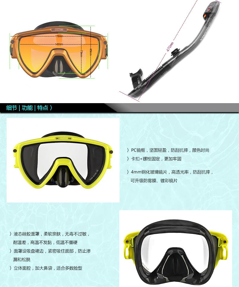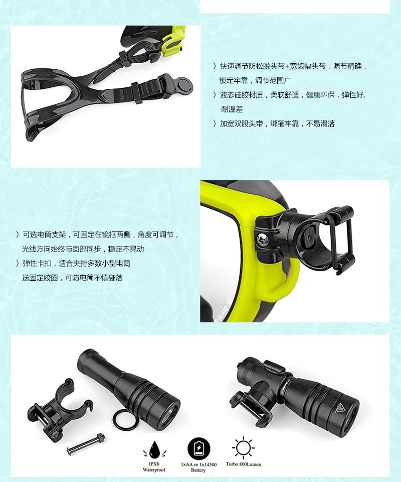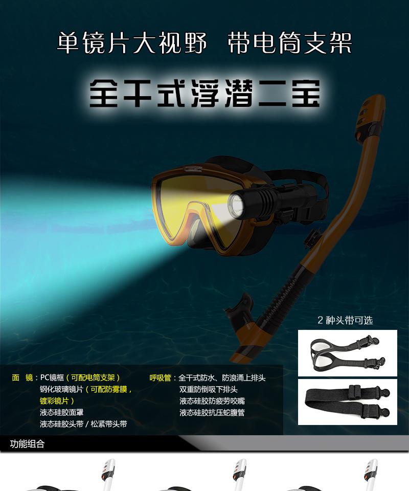 Equipo profesional de snorkel Erbao totalmente seco de silicona antivaho de vidrio templado máscara de buceo tubo de respiración con traje de linterna pequeña