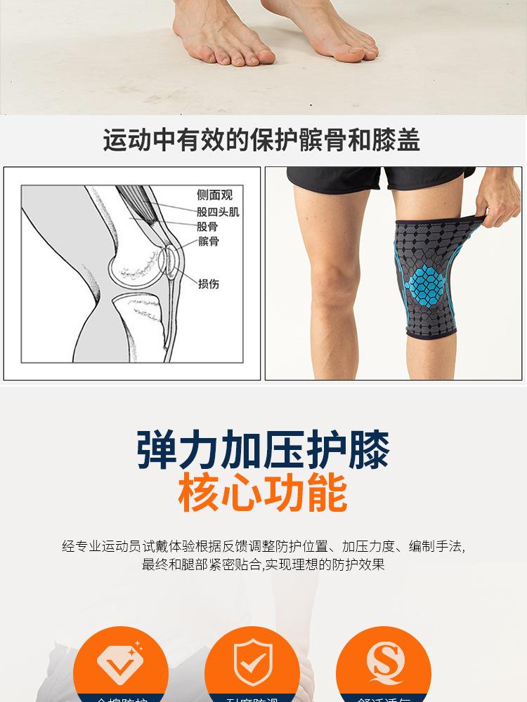 Rodilleras deportivas de venta transfronteriza, cálidas, de nailon y silicona, antideslizantes, para hombre y mujer.