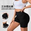 Pantalones de yoga de tres puntos para mujer, cintura alta, levantamiento de cadera, mallas elásticas de cadera color melocotón, pantalones cortos deportivos para correr y fitness, línea sin vergüenza