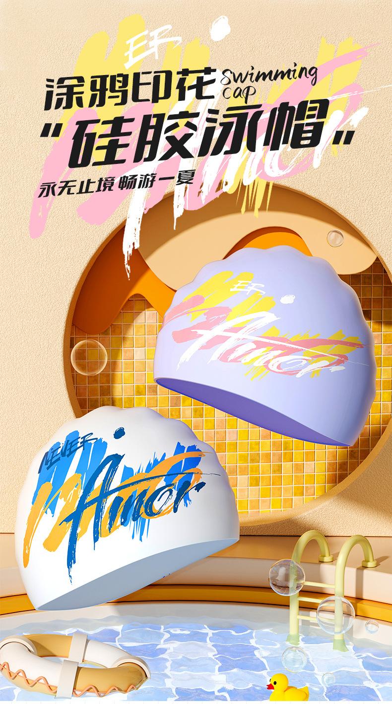Purple graffiti [silicone cap for teenagers 12-18 years old]], White graffiti [silicone cap for teenagers 12-1...
