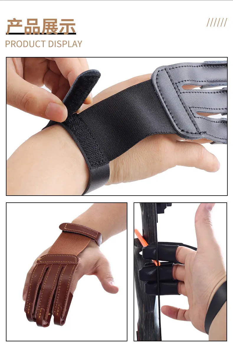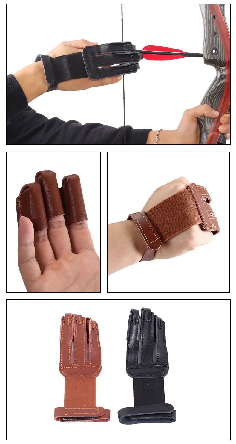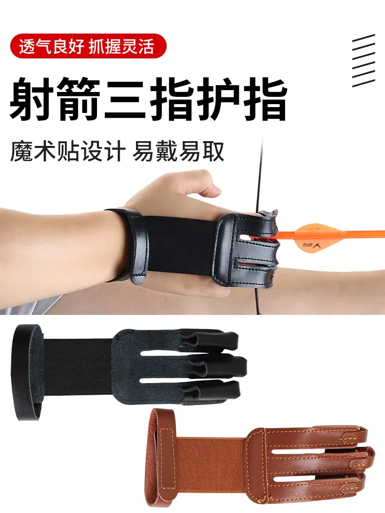 Compra Equipo de protección para tiro con arco, protector de dedos de tres dedos, arco recurvo de caza tradicional americano, guantes de cuero para dedos, accesorios para arco de entrenamiento al por mayor en Joom.pro