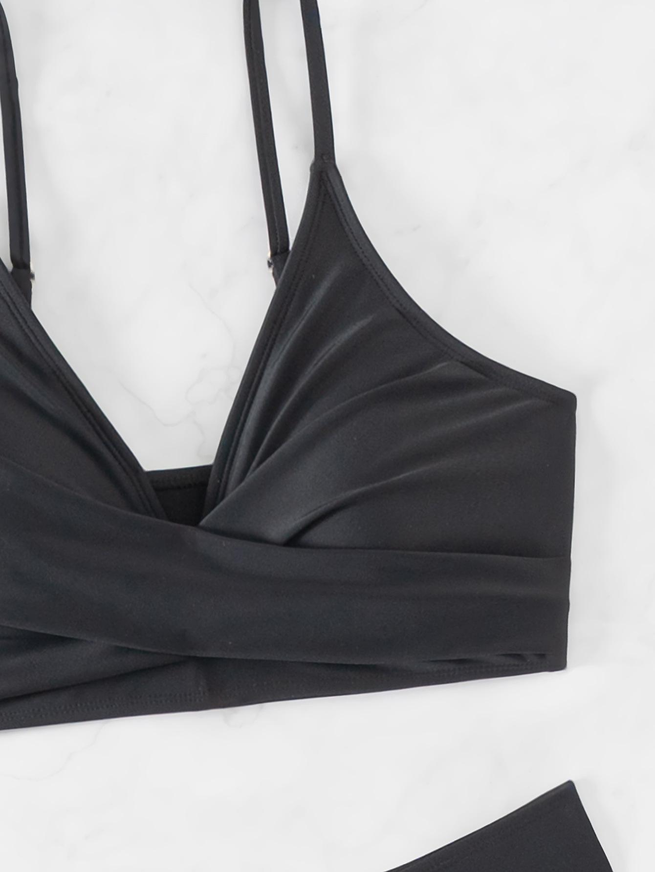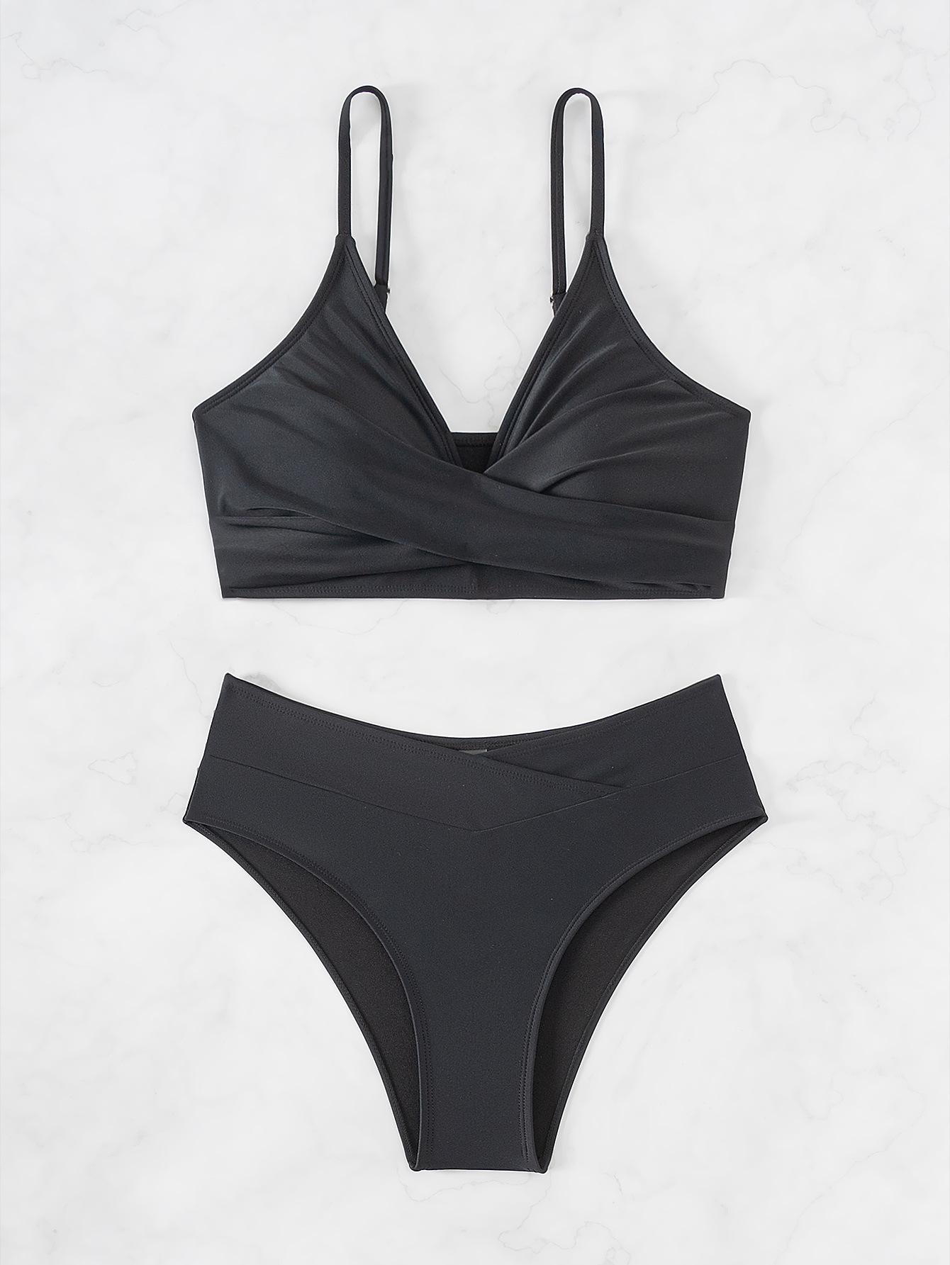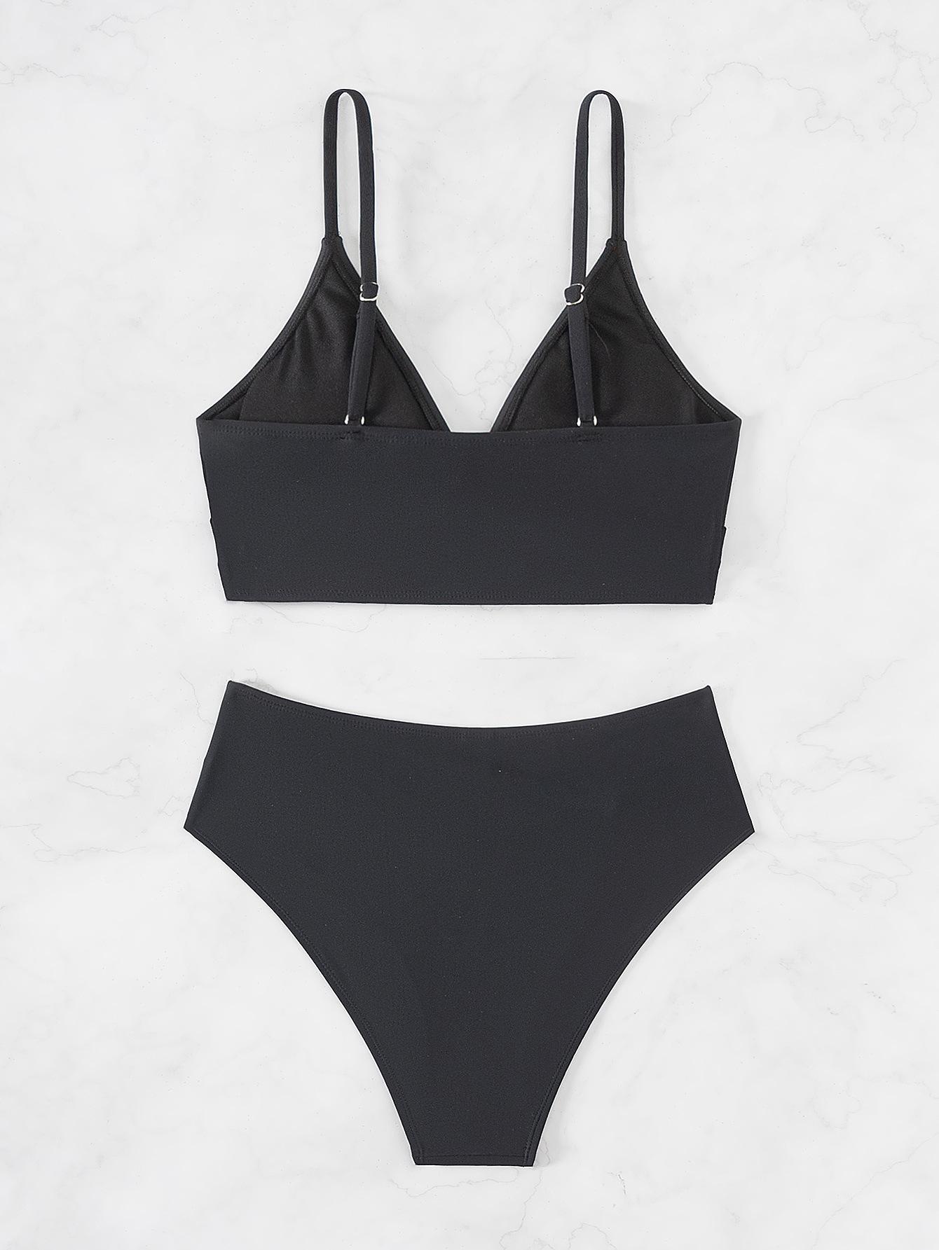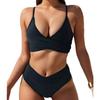 Bikini 2025 nuevo, comercio transfronterizo europeo y americano, color sólido, plisado, sin espalda, sexy, dividido, traje de baño.