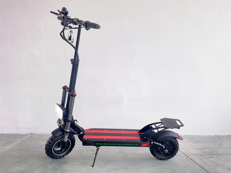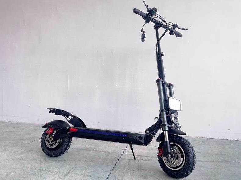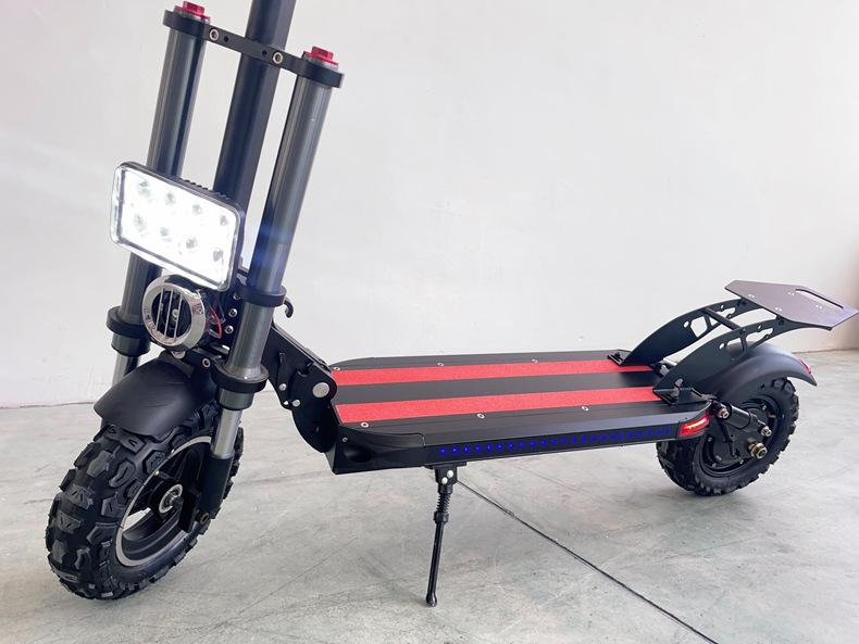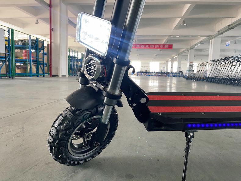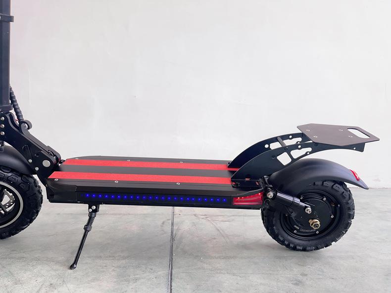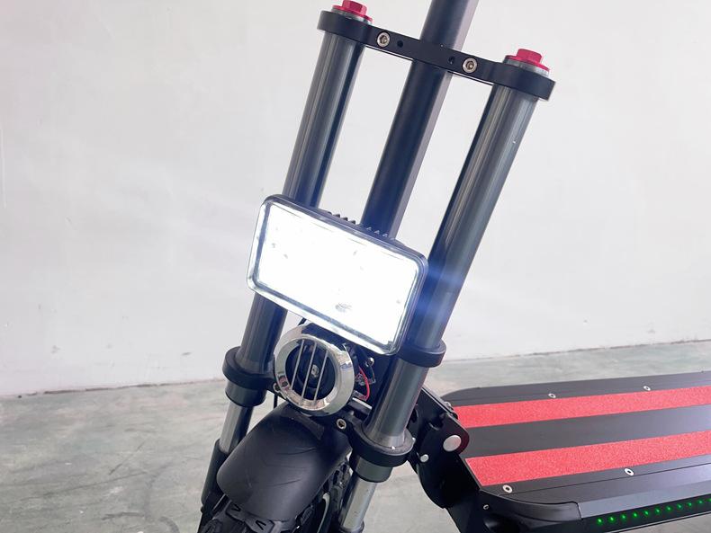 Lámpara LED para coche, 8 cuentas,Pequeño interruptor independiente para los faros.Con interruptor de llave de apagado,Neumáticos todoterreno de 11 pulgadas, ruedas agrandadas de aleación de aluminio, sistema de frenos de disco delantero y trasero,Pedales ensanchados y alargados, luces de marcha de doble cara, luces de marcha, luces de freno, luces traseras,Marco plegable integrado, se puede colocar en el maletero, capacidad de carga 200 KG, 4 amortiguadores de resorte en la parte delantera, amortiguadores hidráulicos dobles en la parte trasera,Tres marchas ajustables, la velocidad más alta puede alcanzar 60, ¡la pantalla LCD muestra el medidor de velocidad y potencia!