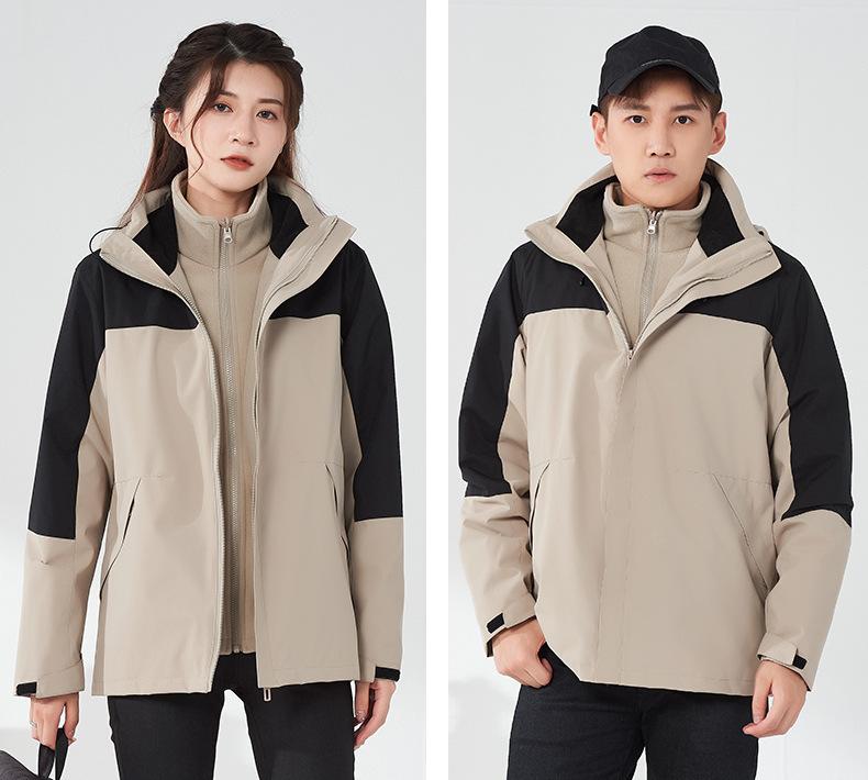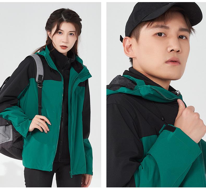 Chaqueta Exterior Tres en Uno Otoño e Invierno Ropa de Trabajo para Hombre Conjunto de Dos Piezas Traje de Montañismo Cortavientos Softshell para Mujer