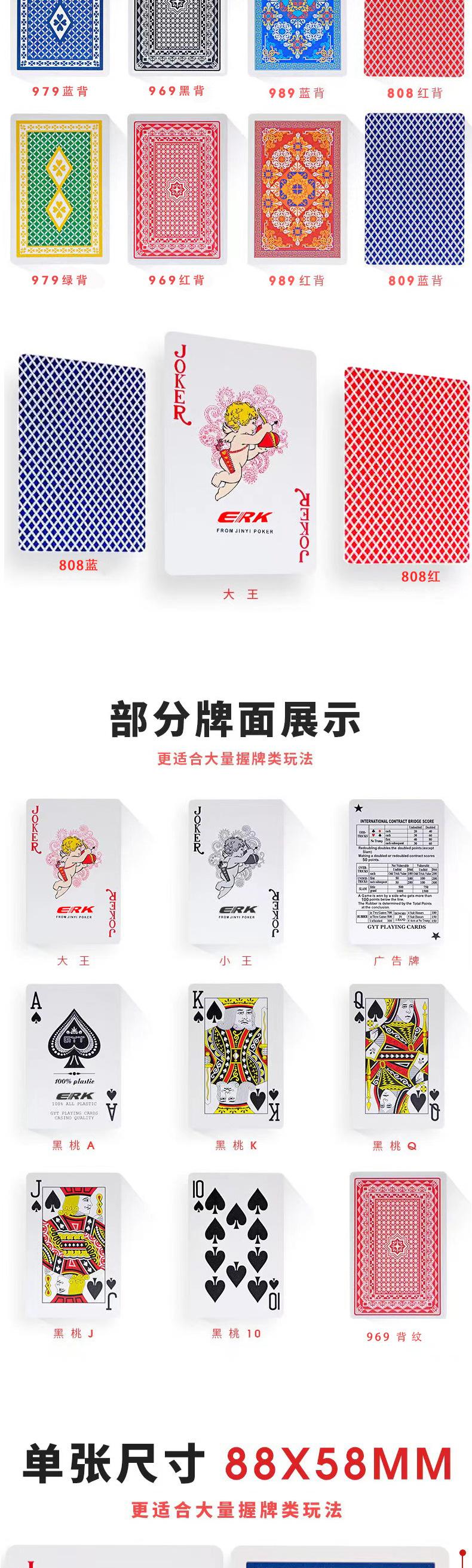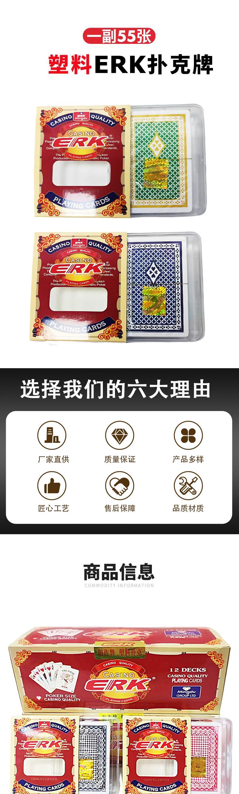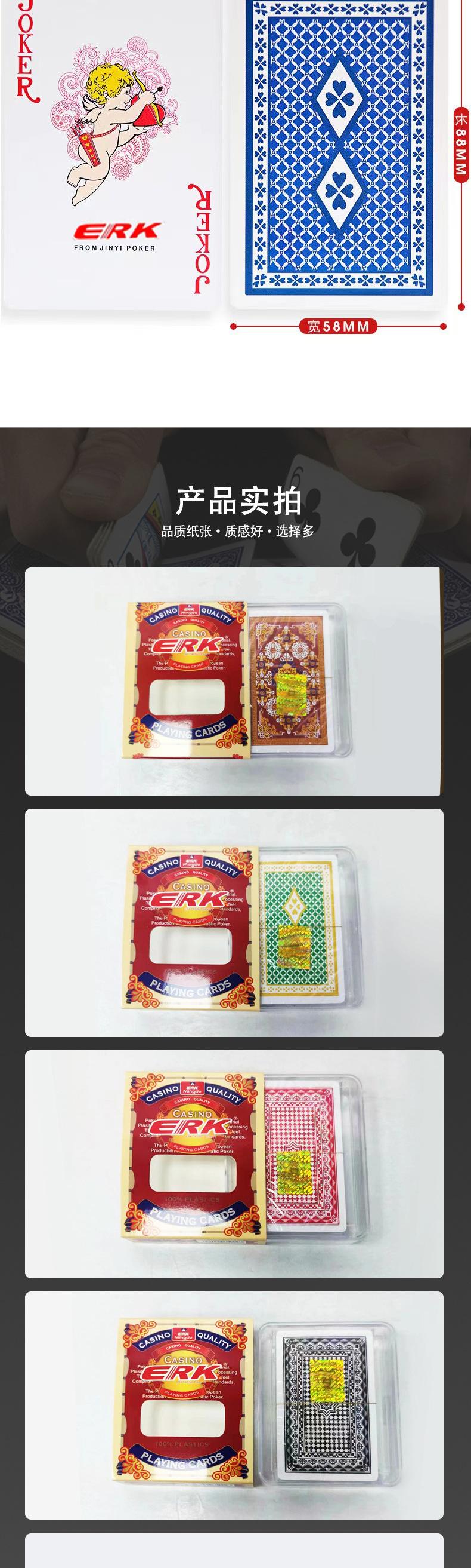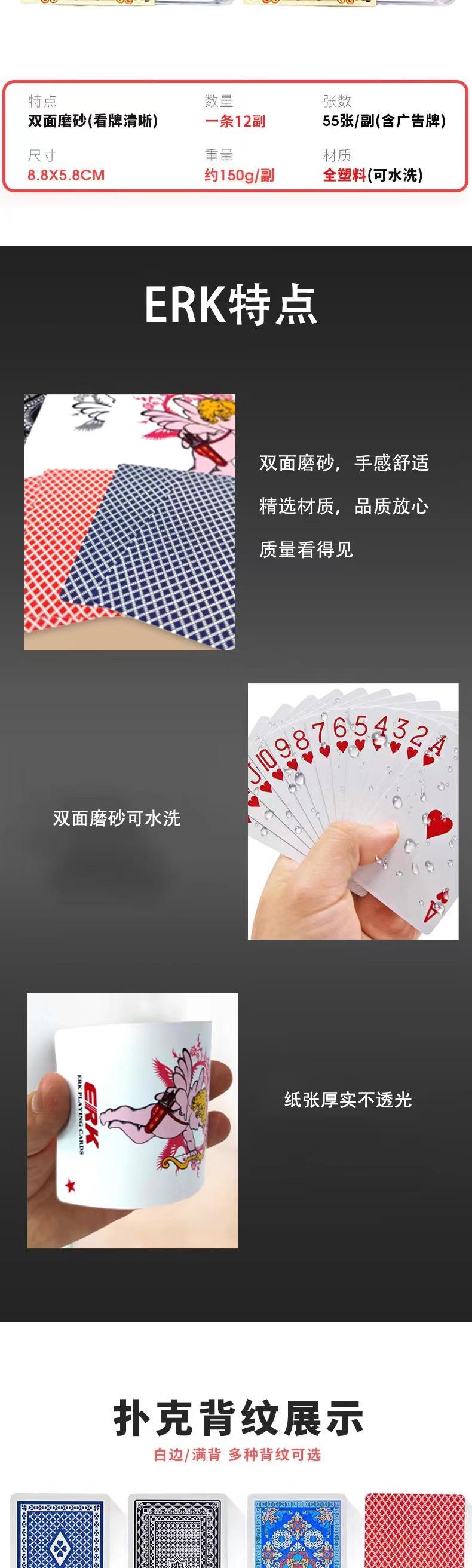 Cartas de Póker de Plástico Erk de Doble Cara Esmeriladas Lavables de Plástico PVC Venta al por Mayor Cartas Antideslizantes