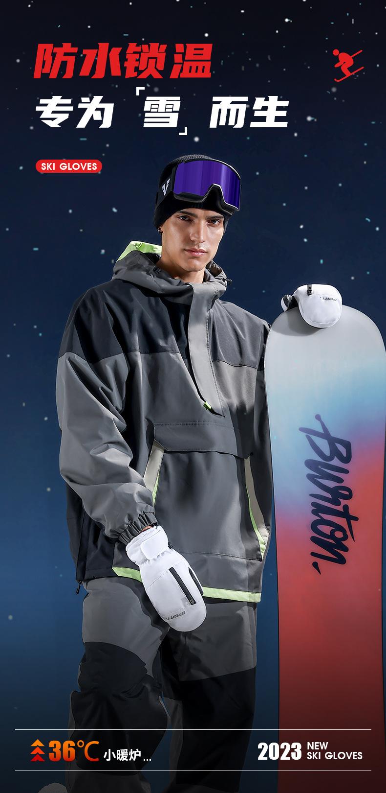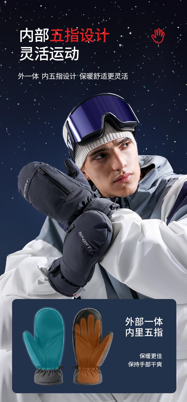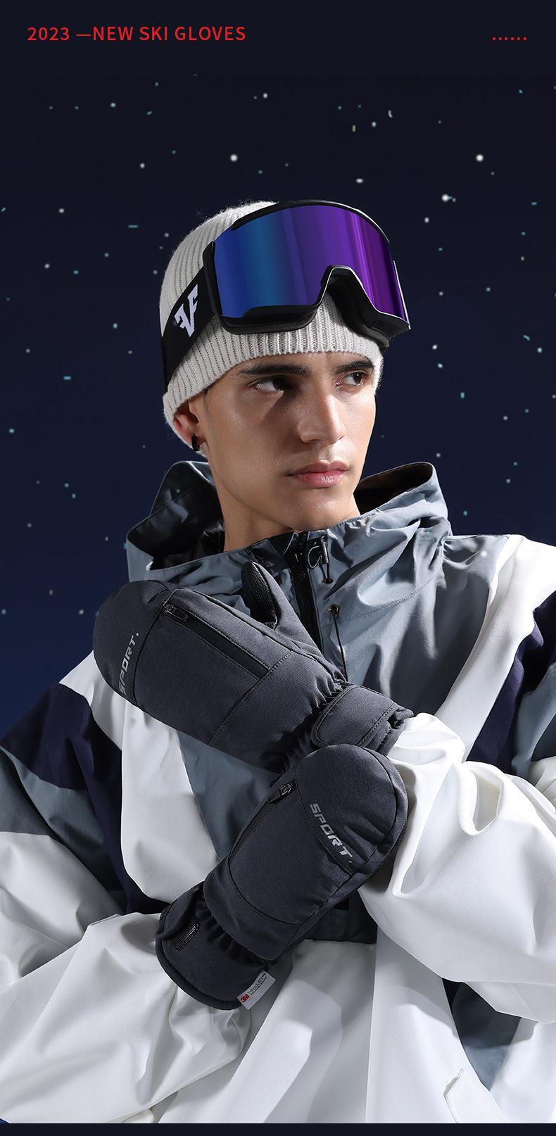 Guantes de esquí profesionales chapa resistentes al desgaste impermeables cálidos cortavientos fríos engrosados para hombres y mujeres relleno de mano de cinco dedos incorporado