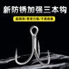 El anzuelo de tres garras apunta hacia arriba y se divide equitativamente en el mango del ancla a 120 grados. Tiene una anilla en el extremo del mango para atar la línea. Es común en la pesca con pólvora en las regiones de Guangdong, Guangxi y Fujian. El principio de este método de pesca es similar al del anzuelo de ancla de dos patas, que se enganchan y capturan con dificultad. Además, este anzuelo también puede usarse para pescar con placa de cobre, ideal para capturar peces feroces como el corégono, el pez de la familia de los peces y el pez de la luciérnaga. Al pescar, opte por lanzar en rápidos y aguas con viento y oleaje fuertes, y utilice el carrete para recoger el sedal, utilizando el brillo de la placa de cobre para atraer al corégono o al pez de la luciérnaga que buscan alimento. Cuando el pez muerda el anzuelo, el pescador sentirá una clara tensión en la caña, que podrá levantar con fuerza para atraparlo.