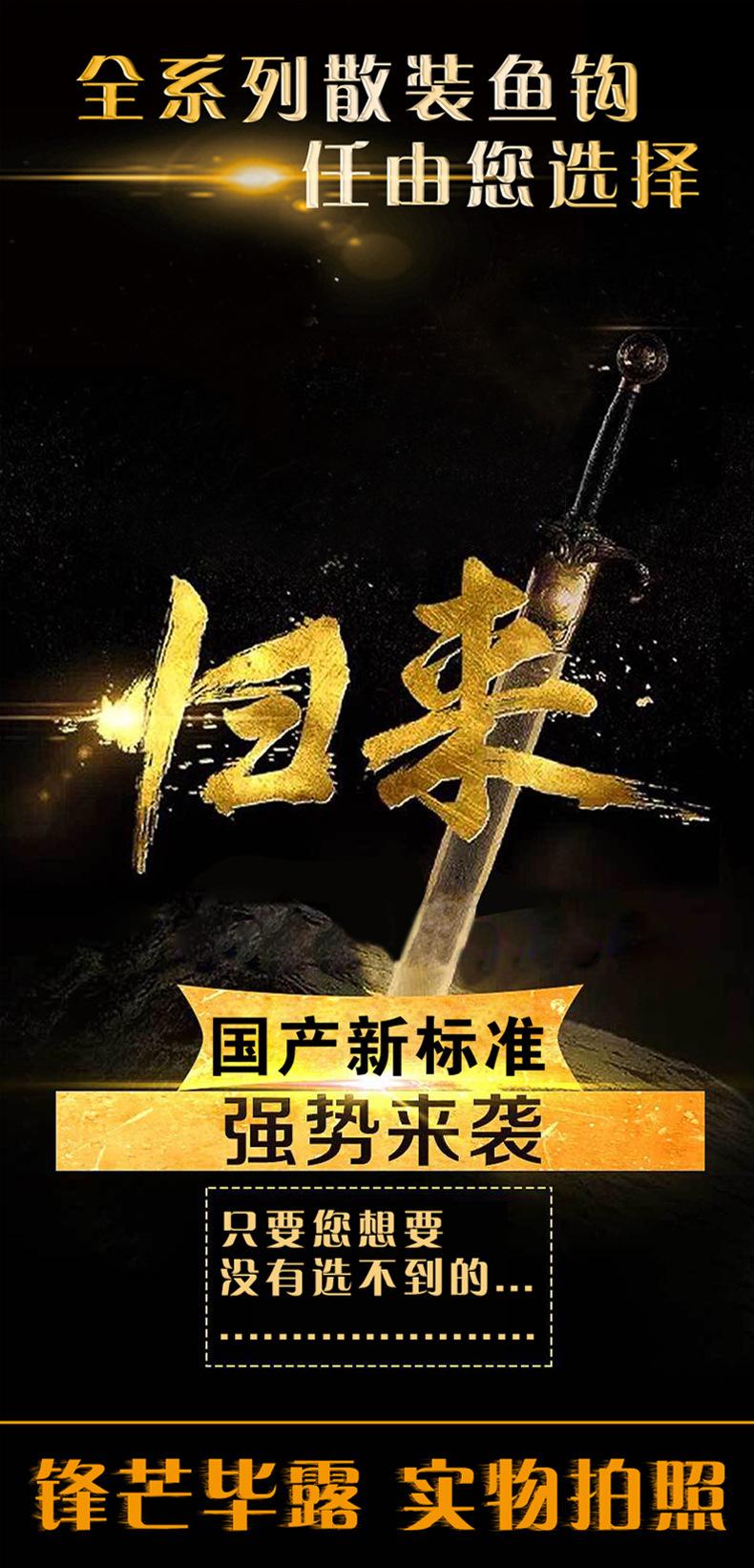 Manga: Este tipo de anzuelo no tiene púas. La punta es afilada, el mango es largo, el anzuelo es delgado y el cuerpo es ligero. Es adecuado para peces pequeños que se alimentan por succión. Es rápido de atrapar y de morder. Se utiliza principalmente para capturar carpas blancas, pequeños peces blancos, etc.