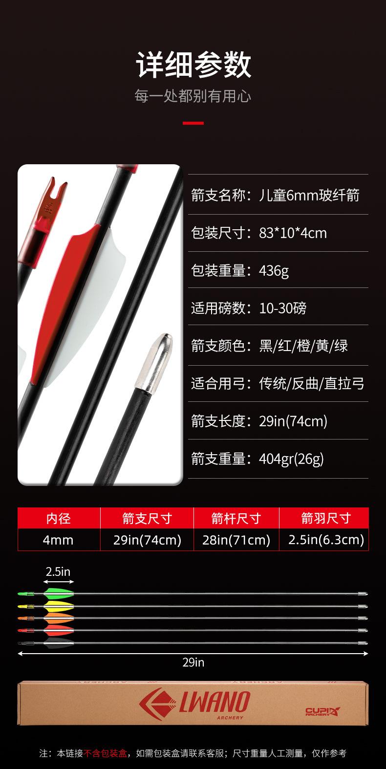 Children's 6mm Fiberglass Arrow-Green, Children's 6mm Glass Arrow-Black, Children's 6mm Glass Arrow-Orange, Ch...