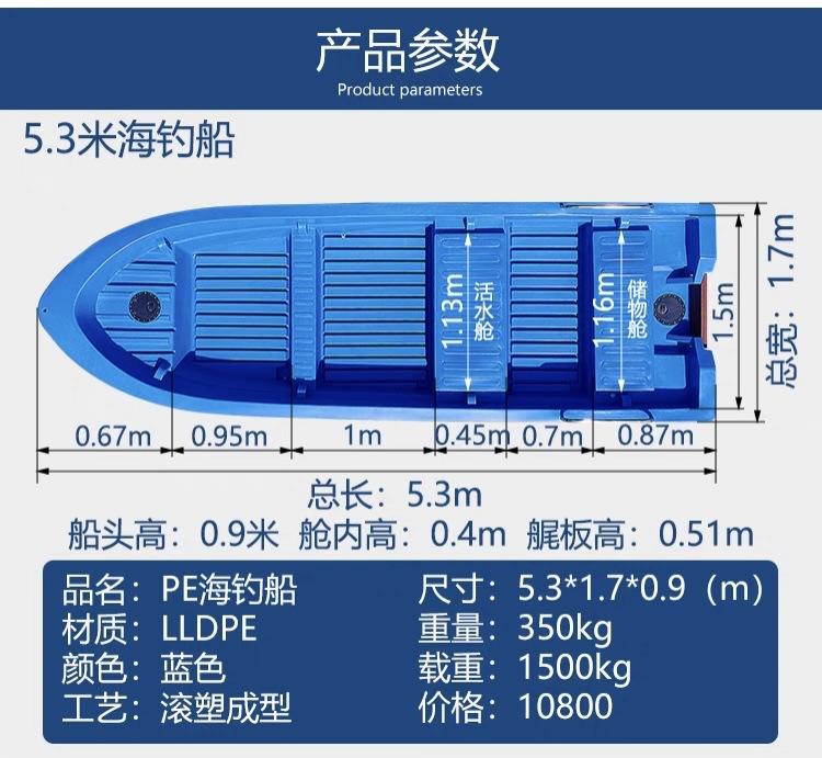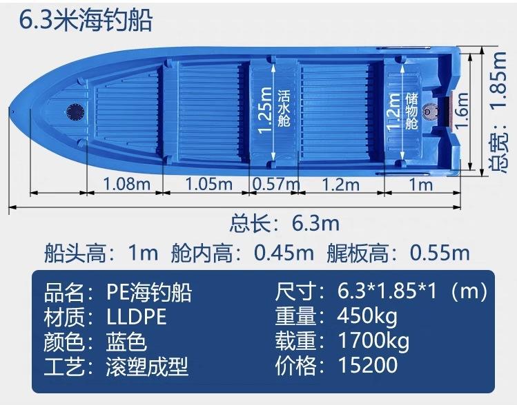 Barco de pesca de 6,3 metros, barco de plástico, barco de pesca, barco de asalto de pesca personalizado, se puede equipar con motor fueraborda de propulsor marino