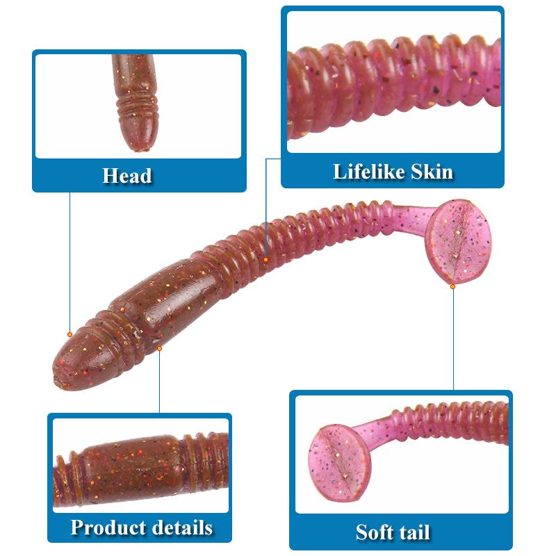 Es el señuelo más utilizado en el mundo hoy en día. Se puede usar para cabeza de serpiente de agua dulce, carpa negra, perca de agua dulce, etc., y también se puede usar para pesca marítima (perca pequeña, mero, águila negra, etc.). Los pescadores pueden elegir gusanos blandos de diferentes tamaños según el tamaño del pez y combinarlos con anzuelos plomados o cobre de bala + anzuelos crank de tamaños correspondientes.