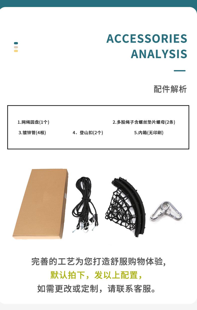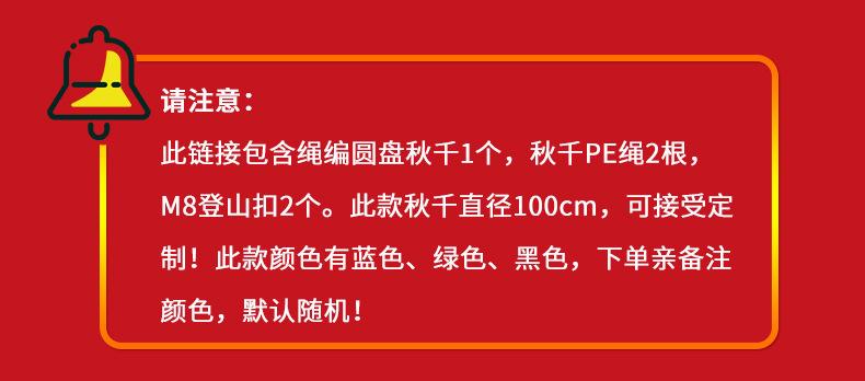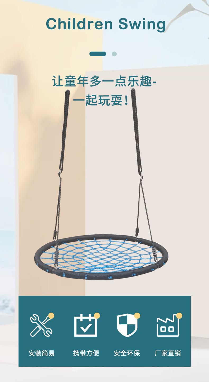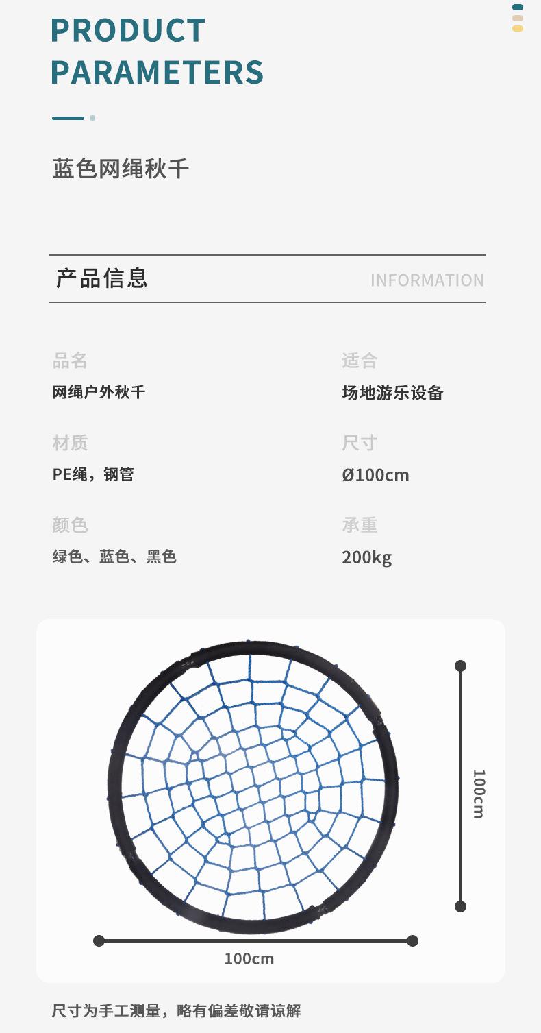 Este columpio está hecho con 3 cuerdas de polietileno, hechas a mano, no tóxicas, ecológicas y libres de contaminación. La plataforma del columpio está compuesta por 4 secciones de anillos de hierro recubiertos de plástico, desmontables y fáciles de instalar. Es un excelente juguete para el ocio en casa.