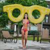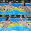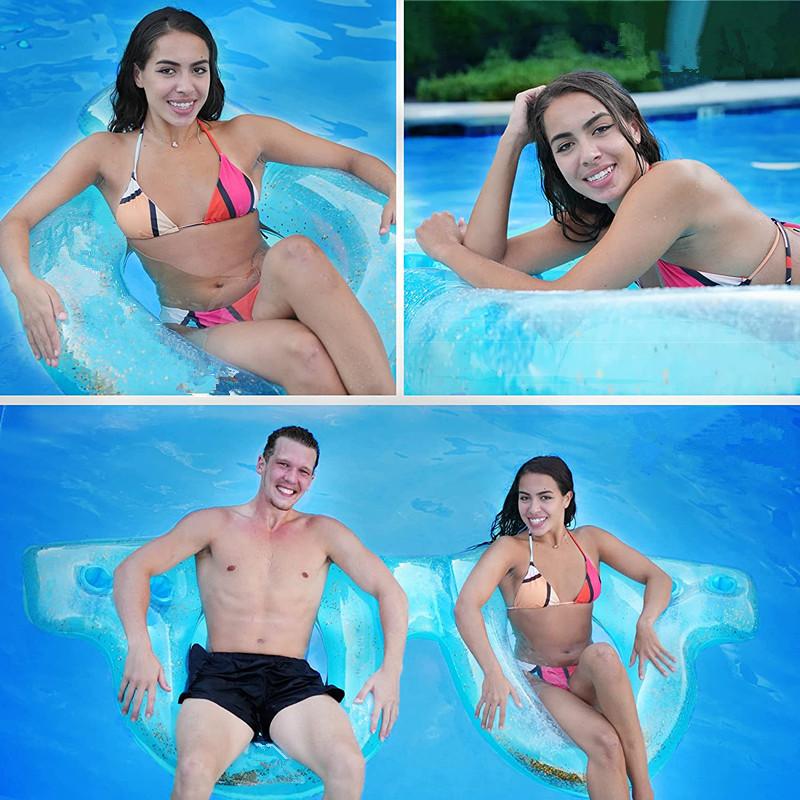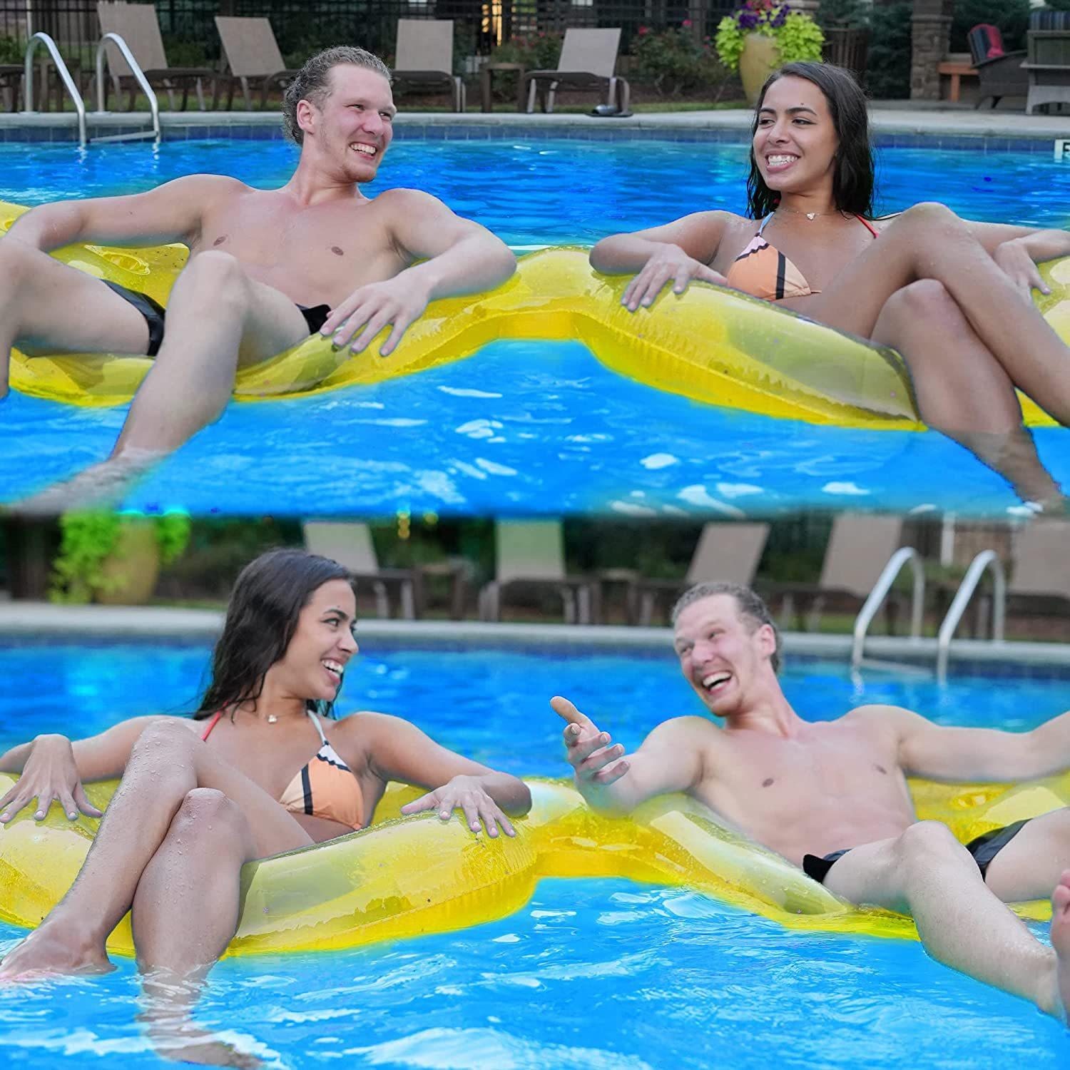 Cama flotante inflable con dos vasos y portavasos de Amazon.