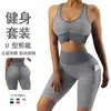 Traje de Ropa de Yoga de Panal Europeo y Americano Sujetador Deportivo de Espalda Descubierta de Belleza Pantalones de Fitness de Cintura Alta Levanta Cadera Pantalones de Bolsillo de Panal