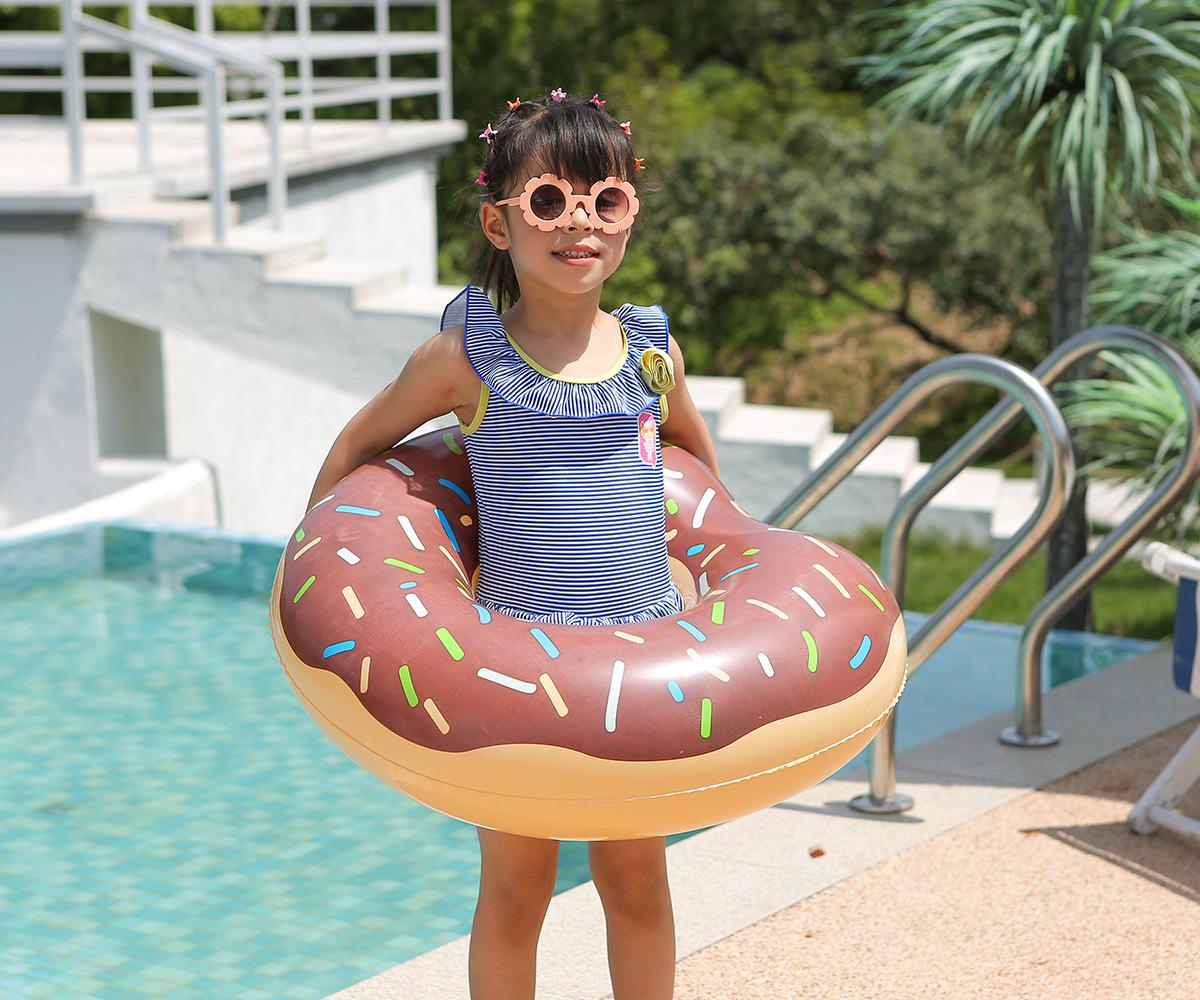 El flotador de 60 lb tiene un diámetro interior de 22 cm y un diámetro exterior de 50 cm una vez inflado. Adecuado para niños de 3 a 4 años.