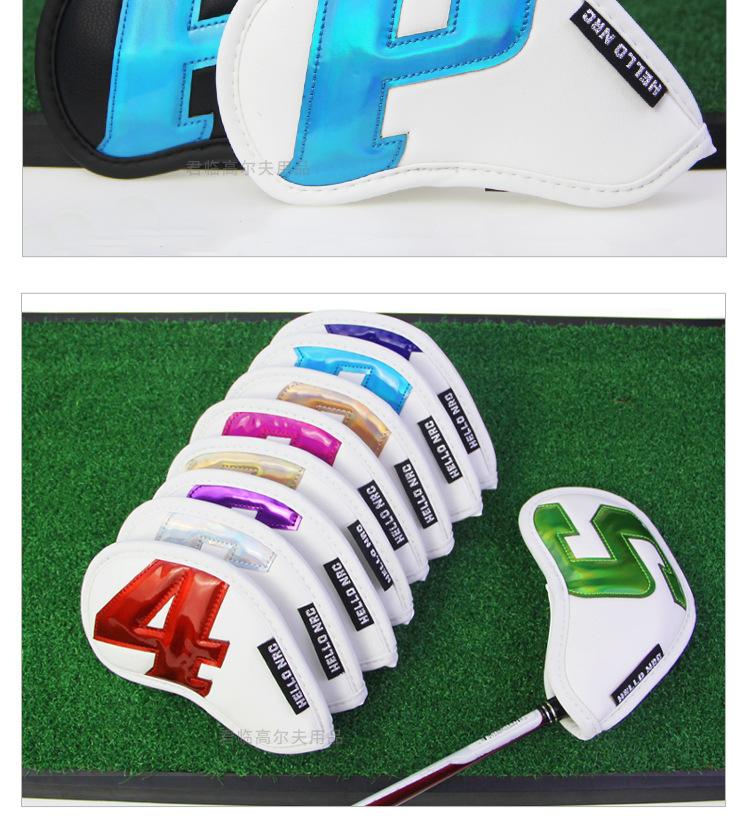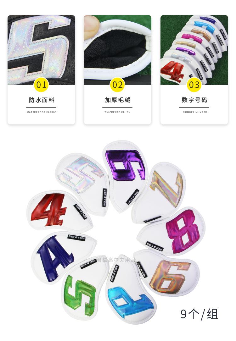 Funda para palo de golf, colorida y grande, con diseño digital, para tapa de palo, impermeable, de material PU, 9 unidades por grupo