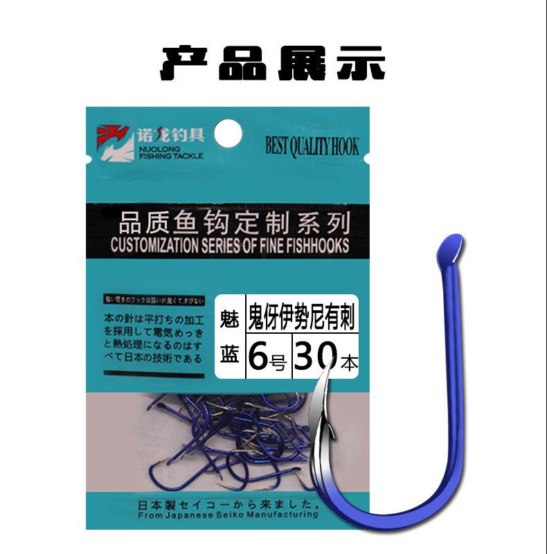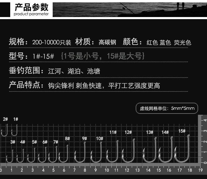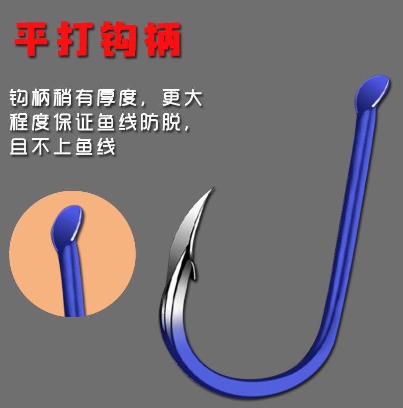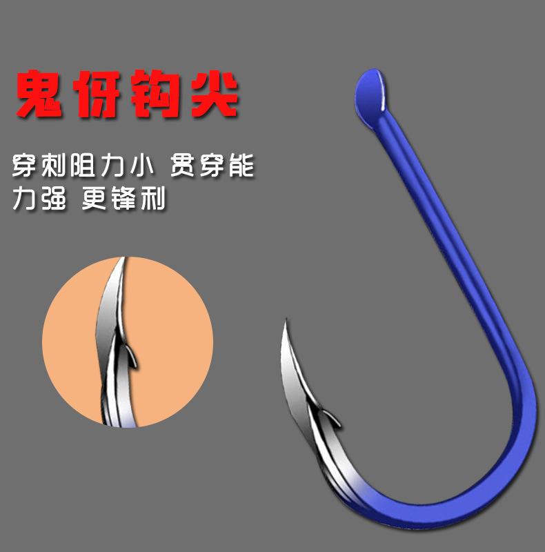 Manga: Este tipo de anzuelo no tiene púas. La punta es afilada, el mango es largo, el anzuelo es delgado y el cuerpo es ligero. Es adecuado para peces pequeños que se alimentan por succión. Es rápido de atrapar y de morder. Se utiliza principalmente para capturar carpas blancas, pequeños peces blancos, etc.