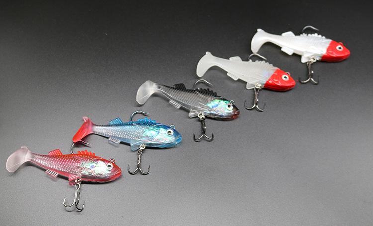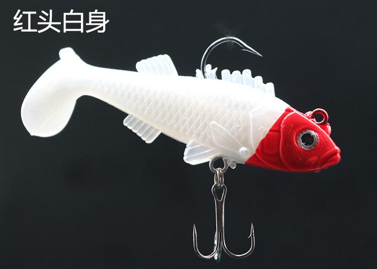 Colores de cebo para peces: azul transparente, rojo transparente, negro transparente, cabeza roja con cuerpo luminoso, cabeza roja con cuerpo blanco